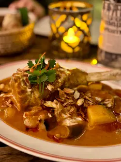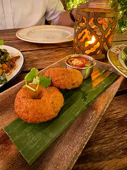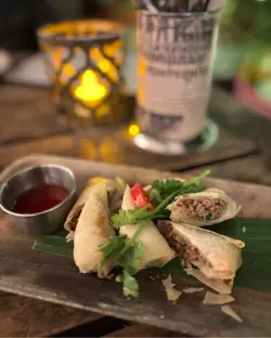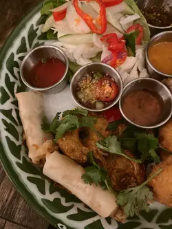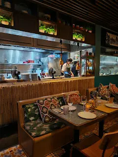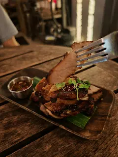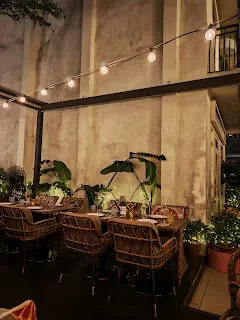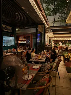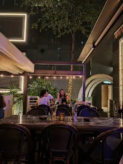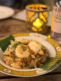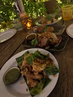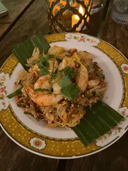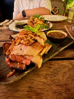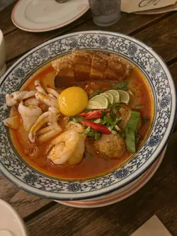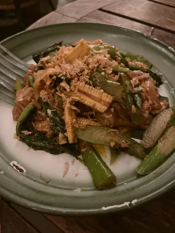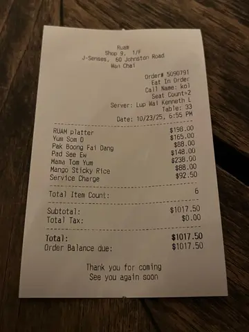 朋友说湾仔J SENSES 一楼藏了家泰菜,电梯门一开,差点以为自己按错键来了曼谷——餐厅一半以上位置是有蓬户外座位!头顶挂著小灯泡,木桌椅间点缀著茂密绿植,晚上微风吹过,这氛围感能在市区存在,实在太棒!柚子虾沙律柚子肉饱满多汁,酸甜交织,少少辣,大虾很爽弹,洒上的花生碎增添香气,开胃得很,很好的头盘。小食拼盘阵容豪华:鸡猪串烧各两串、鱼饼、炸虾饼、春卷,配五款酱汁。串烧烤得恰到好处,鸡肉嫩,猪肉带点焦香;鱼饼弹牙,辣得惹味,虾饼脆口弹牙,春卷好脆,内里是蔬菜。酱汁阵容最惊艳——甜辣酱、沙嗲酱、酸辣汁、花生酱,还有一款蜜糖酸甜酱,沾什么都提味。招牌菜:冬阴功妈妈面喝一口汤,浓郁的香茅和椰奶味在嘴里渗出来,辣得过瘾却不呛喉。超丰富,有脆皮烧肉、虾、猪肉丸、蛋黄。mama面条吸饱汤汁好惹味。十足十曼谷那间排队人气店!泰式芥兰炒阔河粉镬气十足,河粉宽扁,炒得油润却不腻,芥兰清脆,加上豆干和鸡蛋,口感丰富。挤点青柠汁,整道菜立刻清爽起来。芒果糯米饭压轴的芒果糯米饭份量惊人。除了白雪雪的白糯米,还有紫糯米,双色拼在一起很好看。糯米煮得软糯,椰浆甜度刚好。芒果给了一整个,熟度完美,够甜,和糯米一起入口,满足的一顿。坐在露天座位,吹著晚风,吃著地道泰菜,这感觉真的像在泰国度假。…查看更多