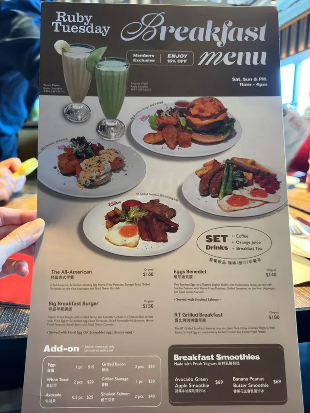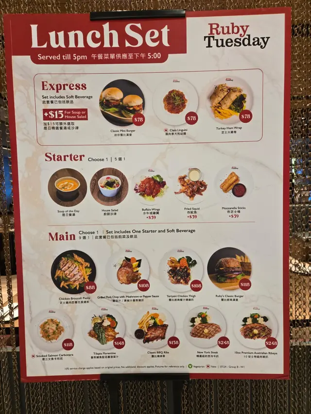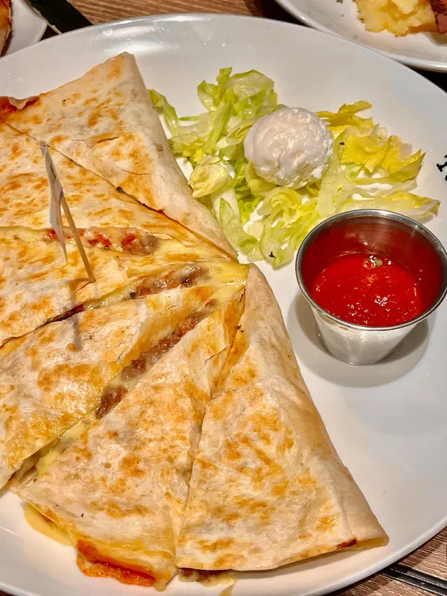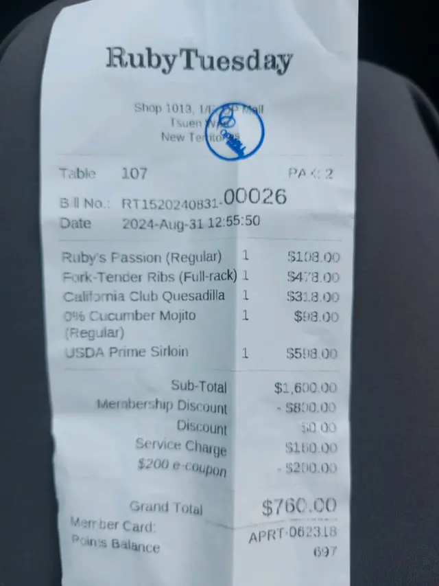 今次試咗招牌煙肉芝士薯條,薯條香脆,芝士濃郁,煙肉鹹香,令人一口接一口。主菜點Hot & Cheesy Ribs,豬肋骨嫩滑,燒烤汁甜酸平衡,配薯蓉入口即化,份量夠二人分享。加州墨西哥烤薄餅,雞肉厚實,牛油果醬同芝士搭配惹味,口感豐富。飲品選美荔動人,荔枝同菠蘿汁調配,清新酸甜,解膩一流。不過,食物有改善空間。薯條份量略少,對於多人分享稍嫌不足。Ribs嘅燒烤汁偏甜,食到後段略膩。飲品選擇唔多,無酒精雞尾酒款式略為單調。價錢方面,每人約$201-400,會員有5折優惠,性價比尚可,但若無折扣就略貴。冷氣有時過強,坐近門口略感不適。整體而言,Ruby Tuesday 荃灣店食物質素穩定,環境舒適,適合輕鬆聚餐,但食物同飲品選擇可更豐富。下次會試Prime Steaks,期望有驚喜!…查看更多