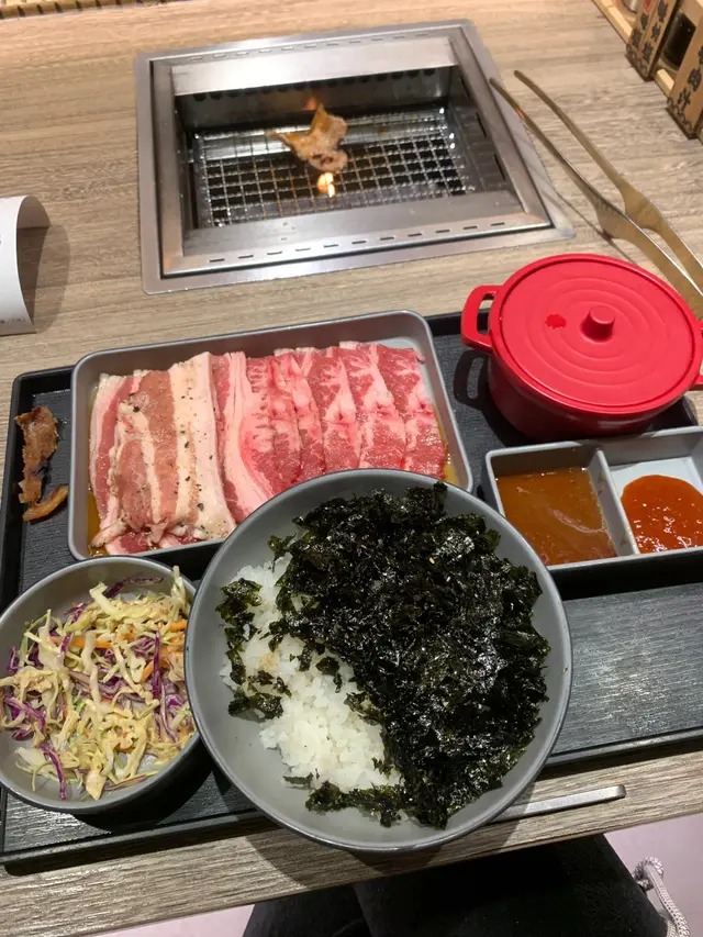 燒肉拼盤定食 (牛胸腹.豚腩肉.雞腿肉)