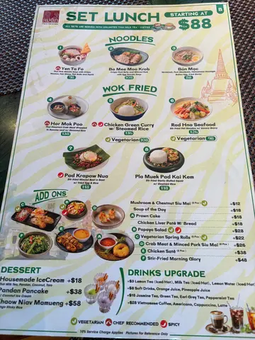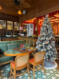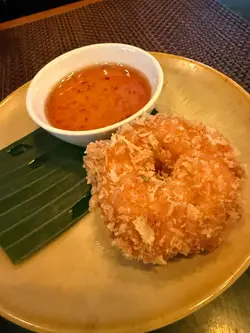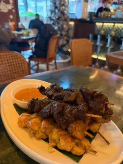 今日行尖咀,经过间半open area 嘅泰国餐厅装修几靓,已经有晒圣诞装饰,好有气氛,想感受一下,入去试!里面座位宽敞,可以坐室外或者室内,我哋拣咗室内,可以望到更多精致嘅圣诞装饰!虽然系泰式,但有啲西方风味,吸引咗唔少外国人来食,叫咗几样嘢食:Chicken green curry with steamed rice + soup of the day + Vietnamese coffee青咖喱唔会好辣,少甜,冬阴功汤,纽西兰花,粟米,味道好入味,算系浓味,好足料!鸡肉厚切,都几嫩滑,加埋啲菜配料,朔晒啲咖喱汁,好食!😃Pad krapow nua + prawn cake + latte 香叶牛肉好香,带少少甜同辣椒,加起上嚟令成个饭都好滋味!虾饼份量好大,薄饼啖啖肉,爽口弹牙,甜酸酱,点缀得10分好味道!Khaw phad poo 蟹肉炒饭好多蟹肉,上面仲有蛋黄蓉,融入啲炒饭里面,特别香蛋黄味,啲饭粒粒分明,好食!Sate Ruam Mit ( chicken, pork , beef ) 串烧有香草味,三种肉都唔算腌得咸,鸡肉份量都好大,鸡肉嫩,配合佢特制嘅酱,有啲花生味,好特别!牛肉猪肉冇臊味,烤到原汁原味,点埋佢个酱,都食到好饱😆…查看更多