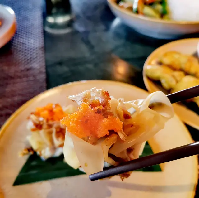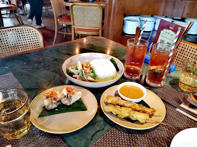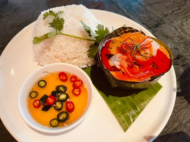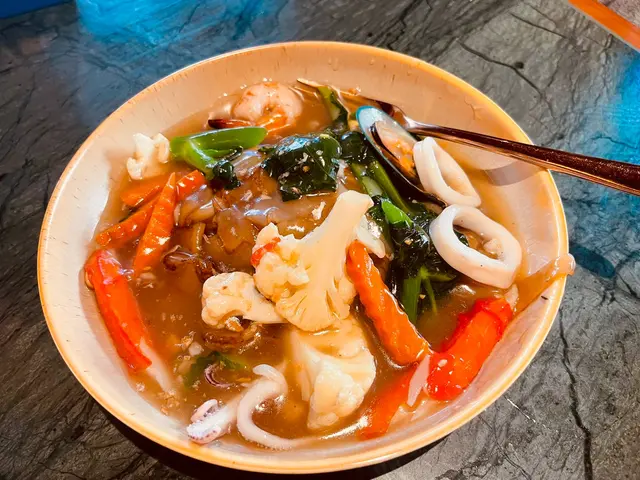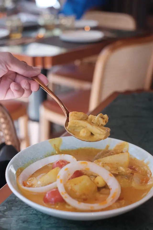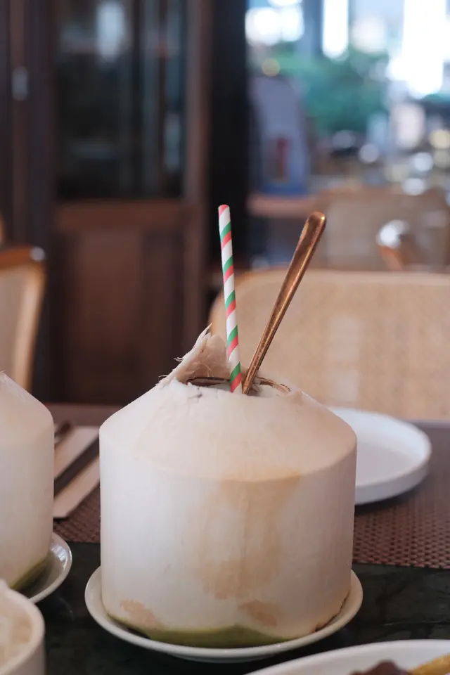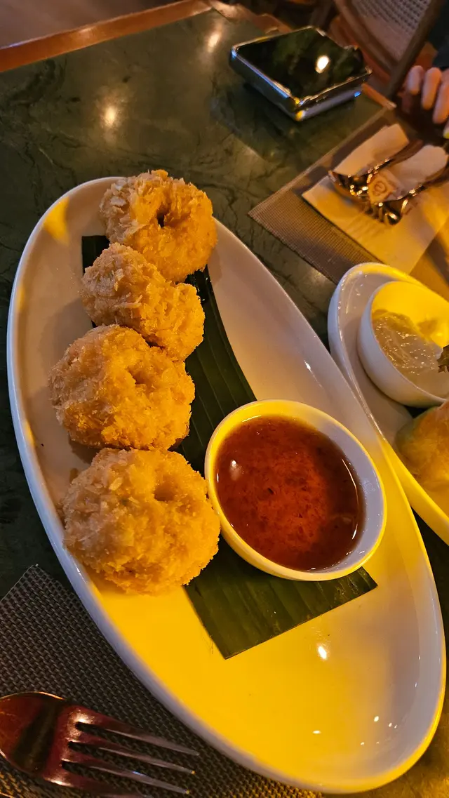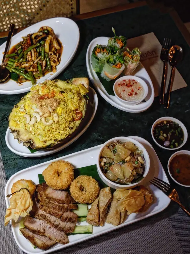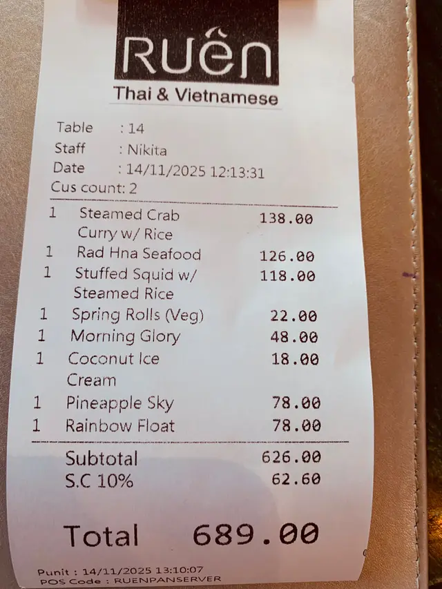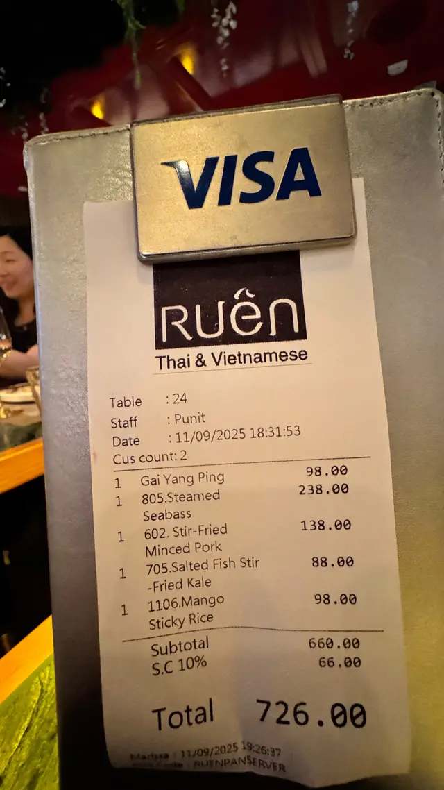 今日行尖咀,經過間半open area 嘅泰國餐廳裝修幾靚,已經有晒聖誕裝飾,好有氣氛,想感受一下,入去試!裏面座位寬敞,可以坐室外或者室內,我哋揀咗室內,可以望到更多精緻嘅聖誕裝飾!雖然係泰式,但有啲西方風味,吸引咗唔少外國人來食,叫咗幾樣嘢食:Chicken green curry with steamed rice + soup of the day + Vietnamese coffee青咖喱唔會好辣,少甜,冬陰功湯,紐西蘭花,粟米,味道好入味,算係濃味,好足料!雞肉厚切,都幾嫩滑,加埋啲菜配料,朔晒啲咖喱汁,好食!😃Pad krapow nua + prawn cake + latte 香葉牛肉好香,帶少少甜同辣椒,加起上嚟令成個飯都好滋味!蝦餅份量好大,薄餅啖啖肉,爽口彈牙,甜酸醬,點綴得10分好味道!Khaw phad poo 蟹肉炒飯好多蟹肉,上面仲有蛋黃蓉,融入啲炒飯裏面,特別香蛋黃味,啲飯粒粒分明,好食!Sate Ruam Mit ( chicken, pork , beef ) 串燒有香草味,三種肉都唔算醃得鹹,雞肉份量都好大,雞肉嫩,配合佢特製嘅醬,有啲花生味,好特別!牛肉豬肉冇臊味,烤到原汁原味,點埋佢個醬,都食到好飽😆…查看更多