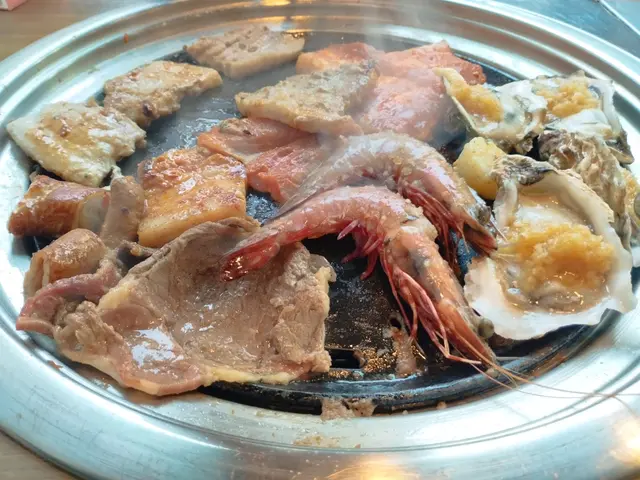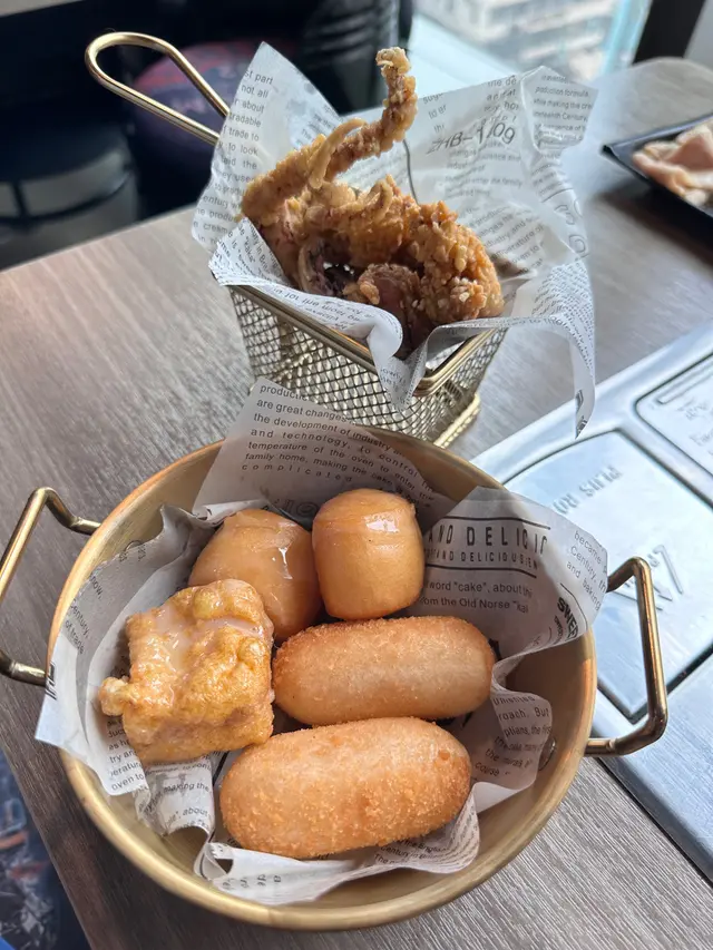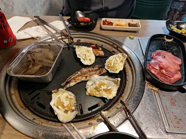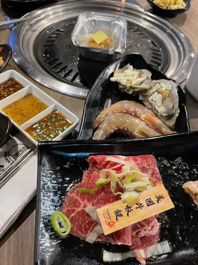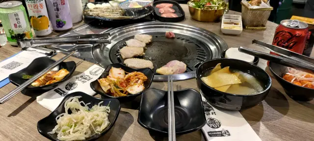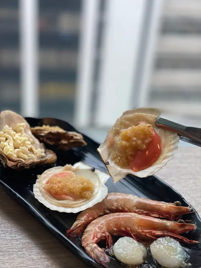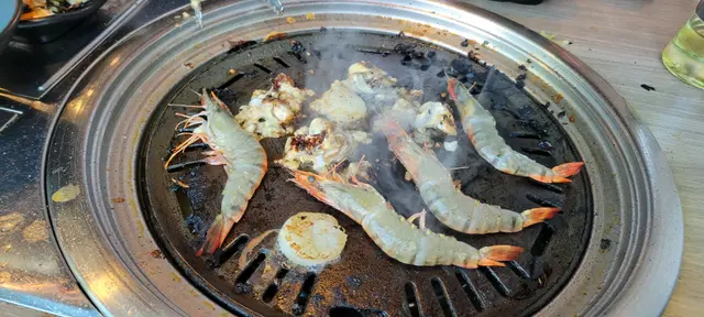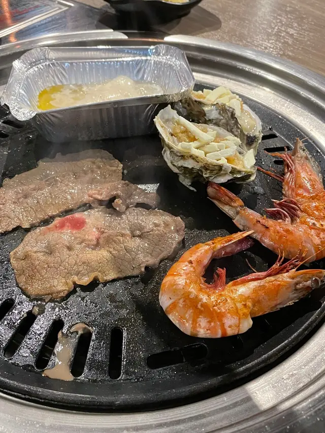 在網上買了買一送一的餐券,今天就去試一試。餐廳的佈置像街頭吃飯一樣,鐵筒上的爐灶,長條抽氣筒,不用特別裝飾,十分隨意。這裡提供燒肉海鲜任食120分鐘,我們主力燒海鲜,要了很多生蠔,體積適中,蒜蓉芝士的生蟓,十分惹味。海蝦彈牙,蒜蓉牛油帶子也不錯。肉類選擇也很多,牛,豬,鷄都有,但最好吃是牛板鍵,夠嫩滑。燒肉多油會膩,所以要了两盆沙律菜伴吃,沙律菜清爽。還有一些韓式小吃,芽菜,炒年糕也有供應。有一款漿爆黑糖糍粑,流心黑糖,不太甜,外皮黏糯,吃完一次再叫一次。結賬時會送每人一條雪條,味道也可以。總的來說,雖然是冰鲜食物但質素不差。查看更多