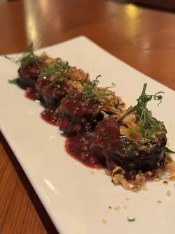西班牙小酒馆「Rustico」位于荔枝角地标D2 Place ,由来自西班牙籍总厨「Javier Perez Freire 」主理,多年的主厨经验,他曾在米芝莲一星餐厅磨练厨艺及游历世界学习各国料理,对西班牙菜的文化瞭如指掌🇪🇸藉著庆祝西班牙十月国庆日,总厨特意设计「西班牙北部朝圣之路美食巡礼」菜单,精心挑选了来自西班牙北部共8个地区不同美食,令大家可以味蕾上朝圣,味道和食材配合充满惊喜😋✨ 烟熏三文鱼他他、火腿果冻、焗苹果泡沫、虹鳟子|口感和味道充满鲜味,非常美味的开胃菜✨烤西班牙血肠、梅子酱、香脆洋葱|血肠味道非常浓郁,口感带点烟靭,酱汁带酸香,刚好平衡血肠的浓烈感✨拉里奥哈特色炖鳕鱼、烤焗马铃薯|鳕鱼皮脆肉嫩,鱼肉肉质细滑,配上味道浓香的酱汁增添风味,配上香脆的烤焗马铃薯,西班牙传统风味✨Rubia Gallega风干熟成肉酥皮、羊奶芝士、西班牙蓝番茄、芝麻菜、焦糖洋葱|全晚最喜欢,卖相已经一百分,酥皮香脆包住丰富馅料,风干火腿和羊奶芝士味道绝配,口感层次都好丰富✨ 烤白芦笋、油封西班牙甜椒、鱼子荷兰酱、水煮蛋碎|芦笋相当Juicy,配上脆烟肉和酱汁,咸香好味,配返一杯白酒就最啱✨西班牙流心蛋伴碎西班牙肉肠、德国马铃薯、新鲜黑松露、蛋黄酱|所有食材需要拌匀,一口马铃薯,充斥着肉肠碎蛋黄味道,外脆内软好滋味✨香烤黑毛猪猪腩、鹰嘴豆酱、葡萄牙海鲜汁、烤高丽菜、辣肉肠|黑毛猪猪腩皮脆肉嫩,满满油脂香,酱汁和蔬菜能中和腻感✨ DESSERT PLATTER 甜品荟萃西班牙油炸圈饼、猪耳甜面包、咖啡啫喱、栗子蓉、杏仁海绵蛋糕、榅桲糕、西班牙迭地亚牛奶芝士、米洛蛋糕、朱古力酱,一次过能品尝从未试过的甜品,非常幸福…查看更多