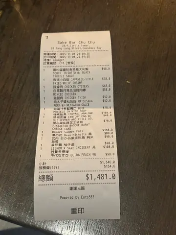 同朋大去咗一间惊喜嘅日式清酒bar「Sake Bar CHU CHU」🍶有齐各款特色清酒😍最啱想轻松chill下又想细味新意思清酒嘅朋友😬.⚠️此餐厅收取10%服务费💰.矶煮鲍鱼🐚单点$108💰鲍鱼口感软且弹牙😆鲍鱼肝完吸收晒酱汁味道😋.黑松露酱鱿鱼筒意大利饭🦑单点$98💰鱿鱼筒包住意大利饭🍚饭粒软绵又带有鱿鱼嘅弹性😗加上浓郁黑松露酱🖤好味道👍🏻.味噌汁煮蓝青口🥢单点$78💰青口新鲜,味噌汤底温和清新☺️.唐扬小白虾🦐单点$78💰小白虾炸到脆卜卜😝加上柠檬汁🍋食到停唔到🤣.自家月见免治鸡肉棒🐓单点$58💰.明太子酱松阪豚🐖单点$52💰松阪豚肉质Q弹😙搭配咸香带微辣的明太子酱🌶️.鸡腿肉🍗单点$52💰.鸡蚝肉🐔单点$48💰鸡蚝肉系鸡腿根部近鸡下背嘅部位,非常珍贵✨肉质软嫩多汁🤤.烧椒皮蛋🫑单点$48💰.开心果乳酪芝士蛋糕🍰单点$78💰开心果香浓🌰蛋糕质感幼滑💯.Wakaze Summer Fall🥂单点$158💰.LIBROM X SAKE INCIDENT 芫茜黄金柠檬90mL🌿单点$108💰芫茜无乜🥺不过几Fresh💦.武内 おかめ果実物语 纯米草莓90mL🍓单点$98💰满满草莓果肉感😌.千代むすび ULTRA PEACH 桃90mL🍑单点$98💰.香住鹤 柚子酒90mL🍊单点$98💰香甜柚子味,够甜😊.泽の花 Beau Michelle 黑90mL🍸单点$88💰.飞驒高山 超辛口纯米吟酿90mL🍾钟意辛口嘅啱晒😉…查看更多