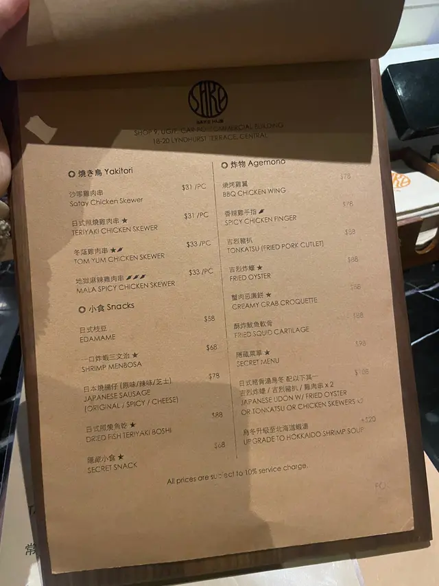 Sake Hub (中环) 网址: https://s.openrice.com/QrLS0Ub4D00 地址: 香港中环嘉寶商業大廈18-20 Lyndhurst Terrace, 电话: +852 91899192