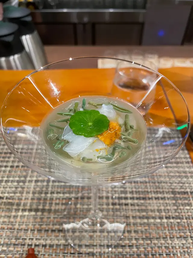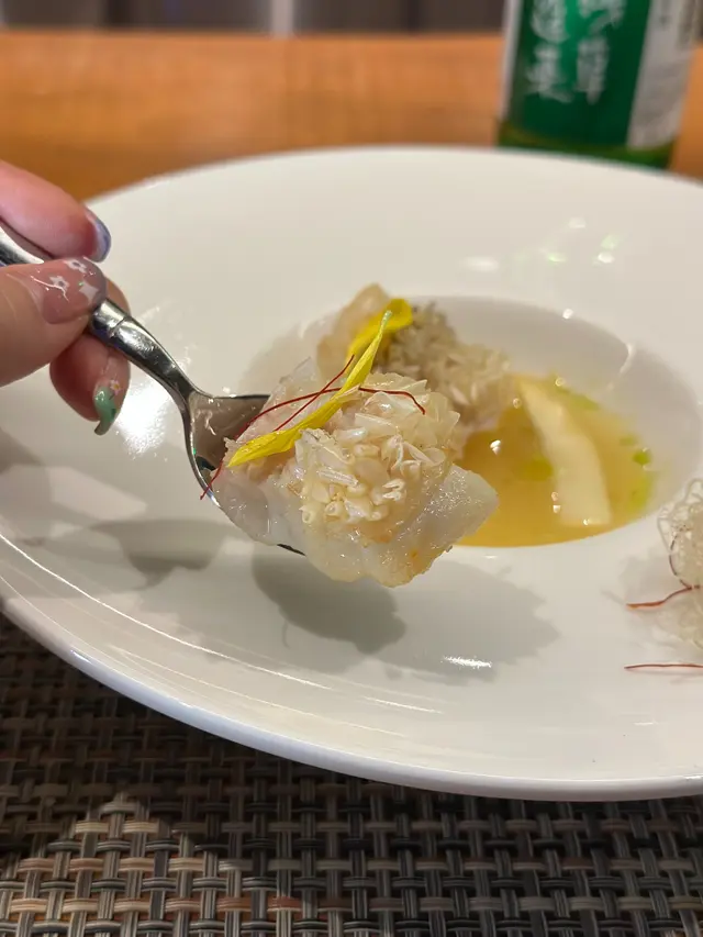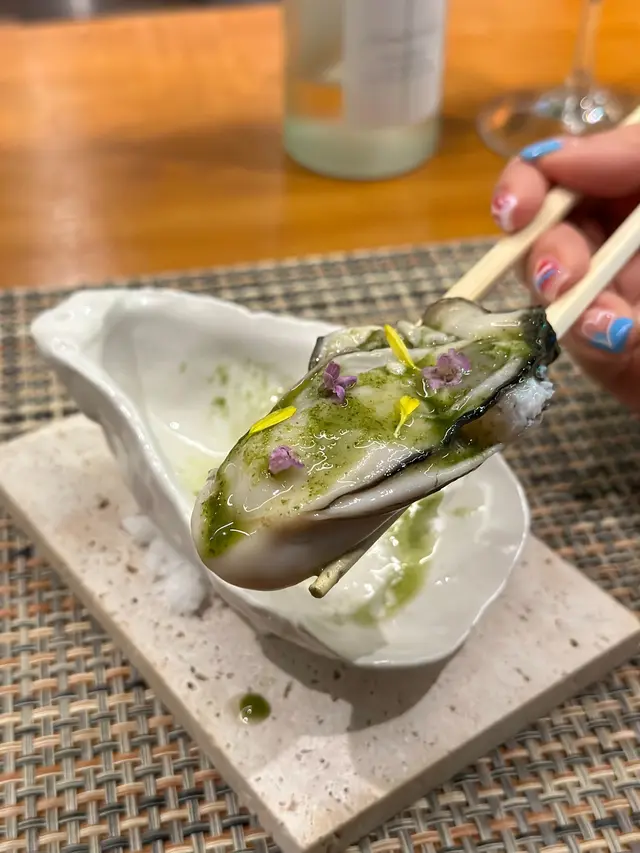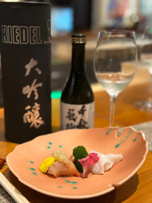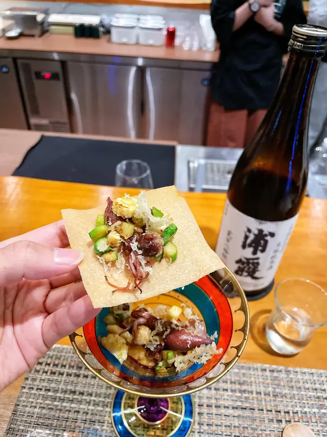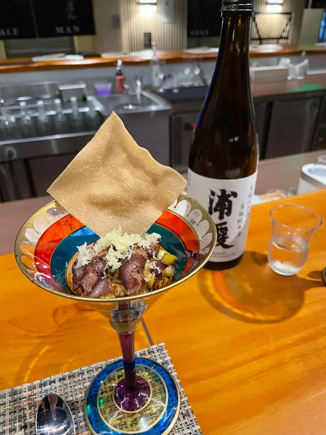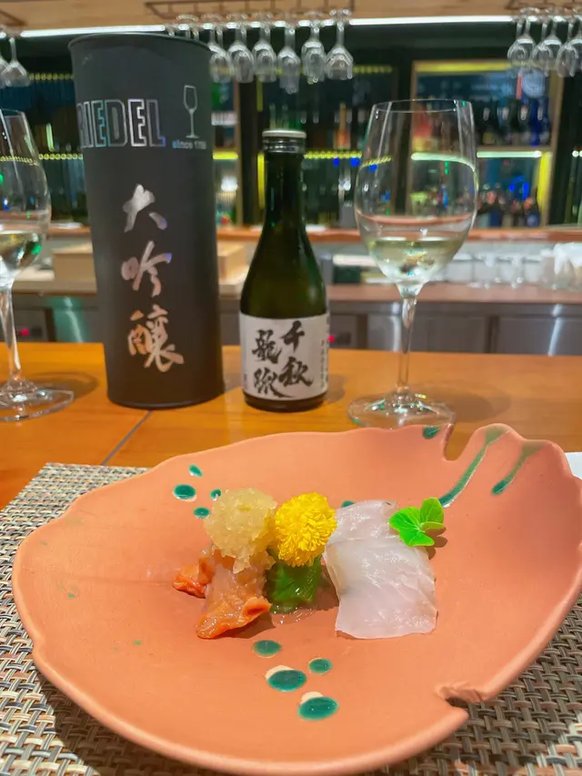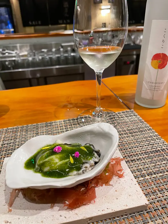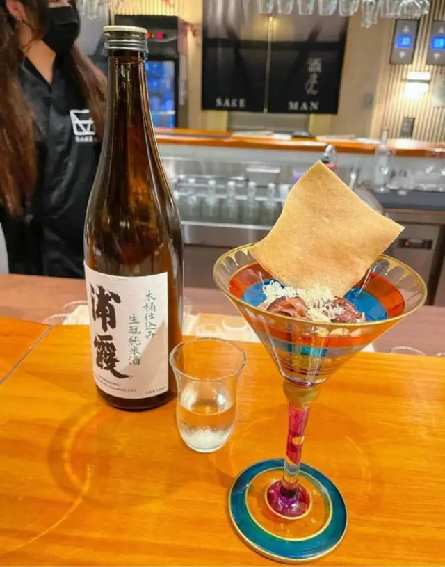今晚去了銅鑼灣一間日式餐廳「Sake Man」食晚飯,餐廳推出特色嘅菜單「Omakase x Sake Pairing」,每道菜式配上不同嘅美酒,十分之特別1️⃣ 芫荽汁配日本產旬之生蠔 🦪日本獨眼龍生蠔 配芫荽汁,意大利番茜,薄荷葉,再加幾滴檸油,食落口有豐富嘅香草味,生蠔肉質偏爽口,肥美飽滿 🍶Coqueliecot 純米 味道甜甜酸酸,是一個開胃酒,與第一道菜非常合襯2️⃣ 醉酒甘海老伴季節白身魚🐟鷹鯛魚 肉質鮮甜又細緻,配上特別醬汁;清酒同花雕酒嘅醉酒甘蝦,好鮮味🍶伊根滿開 赤米酒 純米 清酒顏色係紅色的,因用赤米釀製,甜甜酸酸,似酸梅嘅味道3️⃣ 露筍螢光魷魚配天婦羅脆脆 用上潤腸、美國蘆筍、粟米仔做了一個配搭,而螢光魷魚🦑因為是季節性,特別肥大,放在春卷皮做成一個他他的食法,正🍶浦霞 木桶仕込 生酛 純米宮城縣 Dry身少少,同時之間帶返出比較強烈嘅鮮味4️⃣ 法式酸汁鱗甘鯛伴白露筍 🐟 用法式概念做的酸菜魚,上面係白甘鯛,用立鱗燒方法,將甘鯛連魚鱗炸至脆身🍶残草蓬萊 純米酸度比較高少少5️⃣ 法式鴨肝醬🦆 用Sake 及白蘭地製作嘅鴨肝慕斯,可以加上莓醬一起食用🍶 大倉 古代酛 純米生原酒甜度更加高,酸度自然都會高啲,配搭返鴨肝嘅油香6️⃣ 黑松露雜菇配慢煮牛肋肉 🐮 慢煮牛肋肉 上面加上黑松露雜菇,口感一流🍶 X3 麴三倍仕込 BLANC酒味有少少蘑菇及豉油味道,用嚟配搭較重味嘅牛肉7️⃣ 毛蟹肉伴海膽冷稻庭、高菜漬、穴子飯團、鯛魚粟米湯🍜 蟹汁用蟹嘅清湯製作出嚟酸汁,十分開胃🍙 穴子飯團酸酸甜甜🥣 鯛魚粟米湯,非常清甜🍶 超。王祿 仕込八號桶 純米熟成嘅山酒,用唔同嘅溫度可以配搭不同食物,先係凍飲狀態,酸嘅度比較高,用嚟配蟹肉烏冬,熱酒則用嚟配飯團8️⃣ 香蕉蛋糕、蜜瓜🍶 閃耀太陽。香蕉果酒,估唔到甜品也可以配上果酒,相當不錯…查看更多
