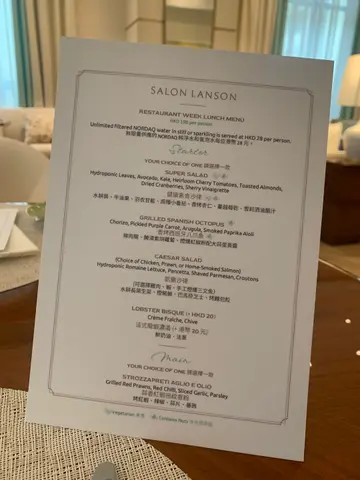 Salon Lanson 坐落喺铜锣湾逸兰酒店入面,环境宽敞舒适,带点法式格调。高楼底加上柔和灯光,感觉高雅但又唔会太拘谨。餐厅前方有个长长嘅吧枱,晚市气氛几轻松,无论系用餐定系饮杯酒倾吓计都几适合。呢度仲会不时举办唔同活动,整体气氛几有生活感。以酒店餐厅嚟讲,价钱算合理,份量都够,两人套餐仲可以拣三款主菜,安排几实际。.菜式方面整体稳定,选择多元,食得舒服。环境靓、灯光柔,坐得耐都唔觉得赶。以逸兰酒店嘅地点同装潢嚟睇,价位其实几合理。想喺闹市中揾个地方慢慢倾计、食返顿安静饭,呢度系不错选择。.当晚的餐点包括暖菠菜沙律配风干鸭胸 Warm Baby Spinach Salad with Duck Breast,酸香开胃,鸭胸咸香与沙律的果香相当合拍;龙虾浓汤 Lobster Bisque 味道香浓但不腻,口感顺滑。主菜方面,蘑菇意大利粉 Tagliatelle Mushroom Alfredo 酱汁香滑,味道较平实;香烤白鳕鱼 Oven Roasted Toothfish Fillet 外层香脆、鱼肉嫩滑,配上青酱与蔬菜,味道清新;烧伊比利亚猪肩 Roasted Iberico Pork Presa 火候掌握不错,肉质结实又有肉香。甜品则有苹果金宝 Drunken Apple Crumble,热腾腾配雪糕,口感丰富;杨枝甘露 Mango & Pomelo Sago 清爽轻盈,是个不错的收尾。.TO SHARE FOR TWO 💲1300✿ Two Starters or Soup✿ Three Mains✿ Two Desserts✿ Coffee or Tea.What we hadAppetizer✿ Warm baby spinach salad.Soup✿ Lobster bisque.Main Course✿ Tagliatelle mushroom.✿ Oven roasted toothfish.✿ Roasted Iberico pork.Dessert✿ Drunken apple crumble.✿ Mango and pomelo sago.✿ Cheese board.Mocktail✿ Ume.✿ Momo…查看更多