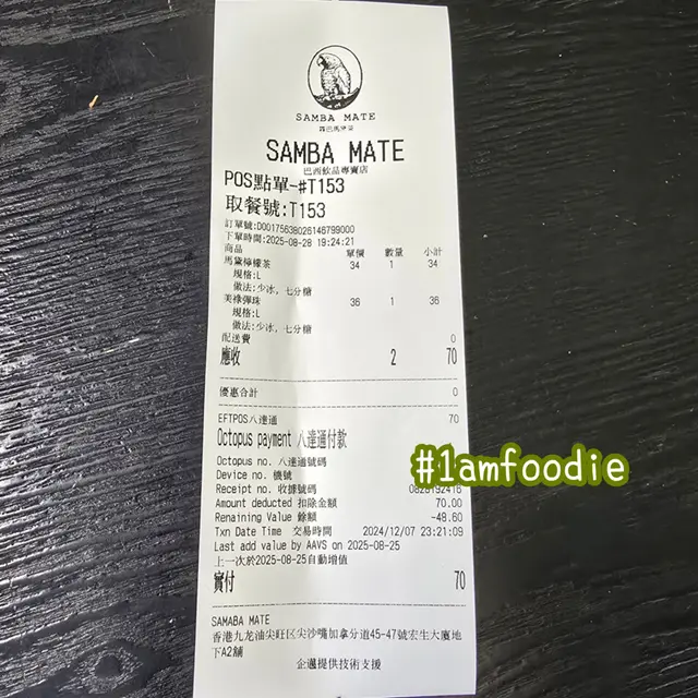 SAMBA MATE (尖沙咀) 网址: https://s.openrice.com/QrLS042OF00 地址: 香港尖沙咀加拿分道45-47號宏生大廈地下A2號舖 电话: +852 66013319