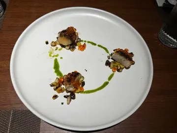 今日试吓呢间楼上西餐真系好有惊喜❤️$328食到呢个5道菜Tasting Menu真系CP值好高🥹而且质素绝对系有水准拍得住Fine Dining既口味🥰 装潢简约好Relaxing绝对适合黎约会🤪⭐️ 香草牛油带子 🐚⭐️ 鸡肝慕斯 🐔带子轻轻用牛油煎香🌊 配上粟米同埋三文鱼子嘅点缀更突出鲜味🌽 鸡肝酱嘅香浓好有特色配上酸甜既洋葱好平衡🧅 Presentation优雅好有Fine Dining水准😽⭐️ 法式龙虾汤 🦞口感幼滑做到法式嘅Consistency🇫🇷 龙虾既咸鲜味道恰到好处💙⭐️ 手拆蟹肉贝壳粉 🦀⭐️ 蕃茄牛肉意大利粉 🍝贝壳粉简单用蒜蓉调味🧄衬托出蟹肉丰富嘅鲜甜🩵 用上猪肉膏既油香有画龙点睛嘅效果🥓 牛肉配上蕃茄酱就好开胃🥫肉味香浓简单但好有意式家庭的感觉⭐️ 熟成米鸭胸 🦆⭐️ 厨师精选炭烧牛扒 🥩鸭胸嘅火候煎得啱啱好保持了嫩滑度☺️ 用上黑加仑子同埋菊苣作调味🍇苦中带酸嘅感觉好有层次 牛扒充满炭烤嘅香气🔥同羽衣甘蓝系好好嘅配搭🥬⭐️ 芒果芭菲配椰奶雪芭 🥭芒果配上椰奶好有Creamy既口感同夏日既感觉🏝️ 卖相有点Deconstruction既印象有创意🎨…查看更多