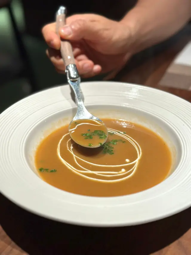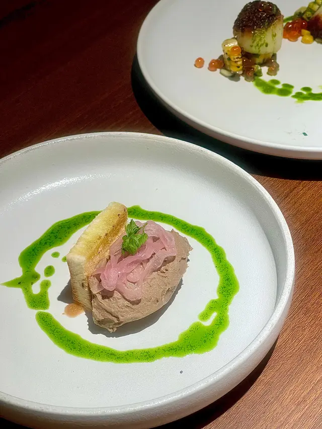 今日試吓呢間樓上西餐真係好有驚喜❤️$328食到呢個5道菜Tasting Menu真係CP值好高🥹而且質素絕對係有水準拍得住Fine Dining既口味🥰 裝潢簡約好Relaxing絕對適合黎約會🤪⭐️ 香草牛油帶子 🐚⭐️ 雞肝慕斯 🐔帶子輕輕用牛油煎香🌊 配上粟米同埋三文魚子嘅點綴更突出鮮味🌽 雞肝醬嘅香濃好有特色配上酸甜既洋蔥好平衡🧅 Presentation優雅好有Fine Dining水準😽⭐️ 法式龍蝦湯 🦞口感幼滑做到法式嘅Consistency🇫🇷 龍蝦既鹹鮮味道恰到好處💙⭐️ 手拆蟹肉貝殼粉 🦀⭐️ 蕃茄牛肉意大利粉 🍝貝殼粉簡單用蒜蓉調味🧄襯托出蟹肉豐富嘅鮮甜🩵 用上豬肉膏既油香有畫龍點睛嘅效果🥓 牛肉配上蕃茄醬就好開胃🥫肉味香濃簡單但好有意式家庭的感覺⭐️ 熟成米鴨胸 🦆⭐️ 廚師精選炭燒牛扒 🥩鴨胸嘅火候煎得啱啱好保持了嫩滑度☺️ 用上黑加侖子同埋菊苣作調味🍇苦中帶酸嘅感覺好有層次 牛扒充滿炭烤嘅香氣🔥同羽衣甘藍係好好嘅配搭🥬⭐️ 芒果芭菲配椰奶雪芭 🥭芒果配上椰奶好有Creamy既口感同夏日既感覺🏝️ 賣相有點Deconstruction既印象有創意🎨…查看更多