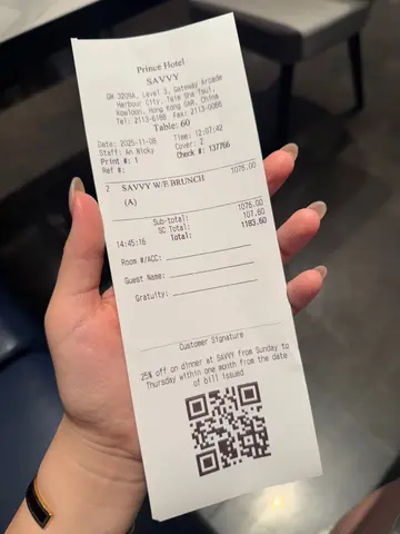 🍴Weekend Brunch Buffet (小童:$388;成人$538)朋友庆祝我揾到新工,带我嚟呢度食自助餐;原来餐厅系亚洲特色餐厅,中式、西式、日式、韩式、泰式甚至印尼菜都有,冷盘热食都一应俱全,唔同口味嘅人都满足到🦞海鲜区有龙虾、长脚蟹蟹钳同蟹脚;龙虾多膏,肉质弹牙,长脚蟹蟹钳同蟹脚肉质鲜美🍞餐包前菜咸甜餐包都一应俱全,连Parma ham,多款芝士都有🥗冷盘沙律沙律选择多,仲有蚬、青口同鲜虾;泰式粉丝沙律酸酸辣辣好开胃,四喜烤麸吸附浓郁的酱汁非常入味,意大利面沙律非常清新,客人可以按自己嘅口味𢳂配料自制沙律🍽️熟食区有印尼炒饭、咖喱鸡,港式烧味,沙嗲串烧,三文鱼柳,澳洲烤牛肉等等,甚至可以叫厨师即煮泰式船面🍰甜品有唔同嘅西式蛋糕、中式嘅杞子桂花糕,仲有泰式嘅蛋糕仔、千层糕,斑兰蛋糕等;蛋糕做得精致小巧,甜度适中而不腻;泰式千层糕突然间听到铃铃声,原来系职员会即席派朱古力脆皮雪糕批,仲可以自选topping,雪糕用咗Häagen-Dazs士多啤梨雪糕,咬落去仲有淡淡士多啤梨果肉,朱古力脆皮够冻同厚☕️ 饮品除左常见嘅coffee and tea,仲有橙汁、苹果汁同罐装饮品,连香茅姜茶都有,仲可以自制泰式椰汁冰🤵🏻 餐厅座位宽阔坐得舒服,而且唔嘈可以倾偈,职员收碟同refill食物嘅速度快手💰而家系Savvy嘅官网订座仲有优惠…查看更多
