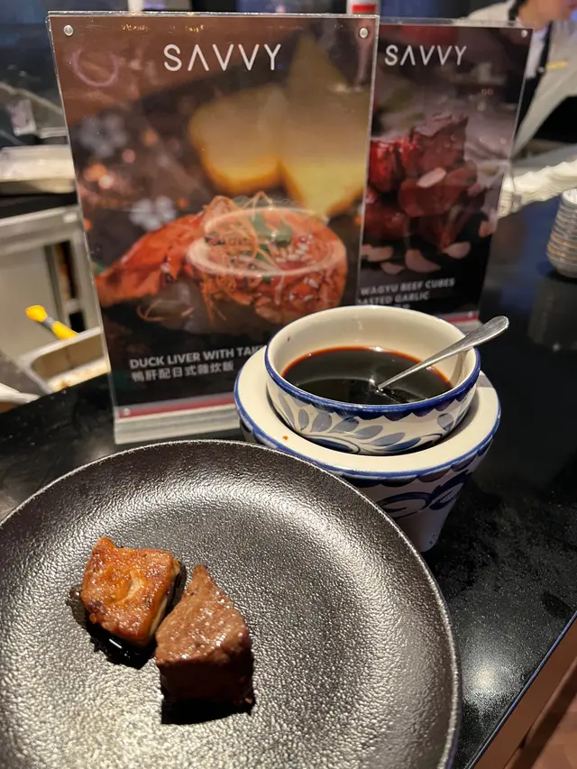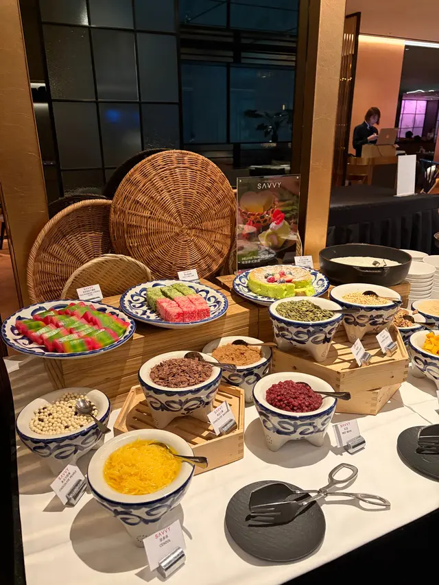 SAVVY自助晚餐一定要提前預訂,平日夜晚食都好full呀~ 馬可孛羅酒店官網仲做緊優惠,50% off‼️ 今次決定帶埋屋企人一齊食,慶祝生日🎂亞洲特色自助餐,必食推薦✅✅刺身拼盤新鮮的刺身一定係回本攻略之一,包括有三文魚、吞拿魚、油甘魚等等,仲有不同的壽司卷物鵝肝拼和牛香軟鵝肝煎得恰到好處,表面香脆,我自行配上印度薄餅一齊食(印度廚師即場烤製)估唔到又幾夾!! 和牛好嫩滑,一口size同鵝肝一齊食,真係好正😇醬燒鮑魚鮑魚新鮮彈牙,搭配特製香甜醬汁,估唔到鮑魚鵝肝和牛都可以仼食!! 師傅好好一次過放曬係客人碟,滿足三個願望😋🦞芝士燒龍蝦除咗凍龍蝦,唔食凍海鮮嘅朋友絕對不能錯過依道芝士燒龍蝦。芝士燒到半溶狀態,配上鮮嫩的龍蝦肉,熱辣辣新鮮整成👍值得一題龍蝦湯,都十分出色😍 芝士燒龍蝦同凍龍蝦都未夠喉的話,飲埋龍蝦湯就完成咗龍蝦大餐😎芒果糯米飯絕對係需要encore,雖然食一碗已經會好飽。 糯米好煙韌,有泰國當地食嘅感覺,十分有驚喜。DIY 椰汁珍多冰自由搭配紅豆、綠豆和水果,食飽飽之後當甜品,好滿足呀🤤甜品鐘聲響起,仲有即場淋上朱古力醬同果仁粒嘅Haagen-Dazs雪糕批,大人小朋友都食得開心😋…查看更多
