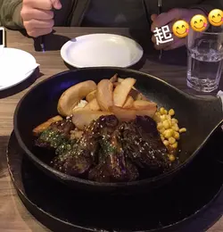 用铁板上小心热 炒一炒佢饭更香口 鸡蛋很滑烤牛肉脆饼$ 68