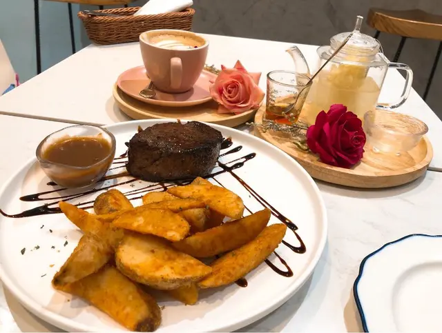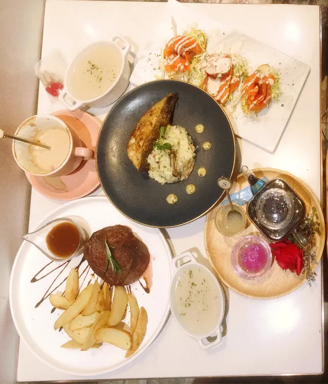#Flashback 少女心平時就唔係甘襯我既但係同行既都係少女... 所以我地就揀左呢一間充滿少女情懷既餐廳啦主菜:我地叫左- 西班牙碟豆花海鮮繪飯: 個名好特別,海鮮都幾多,飯就細細,但都幾creamy 既,上菜時擺碟都幾靚- 安格斯牛肉:塊扒煮得岩岩好、都充滿肉汁,配埋個燒汁,唔錯甜品:-充滿少女情懷既櫻花樹pancake:好大個棉花糖係面..但只係得呢一棵「大」,樓下既pancake仔及雪糕都係岩一人份量的- 玫瑰鮮奶咖啡:擺盤好靚,飲落味道都有玫瑰花味知道佢係銅鑼灣開左鋪,會再試下睇下食物味道及裝修會唔會更好先~…查看更多