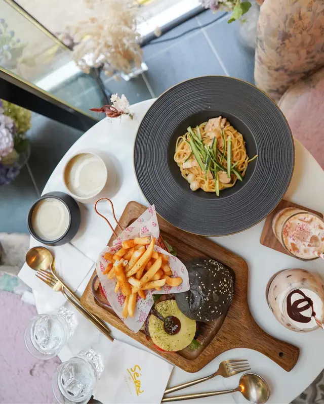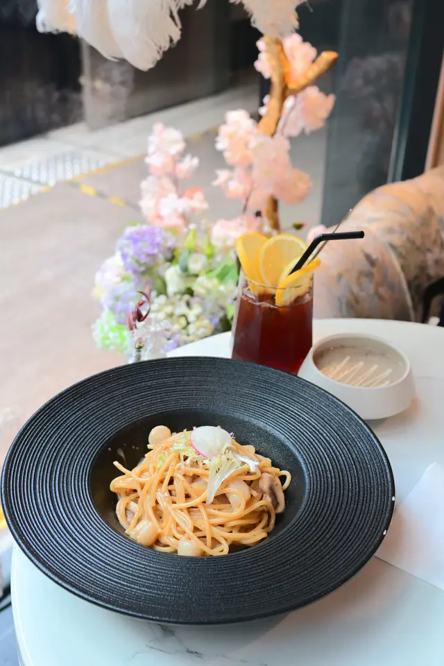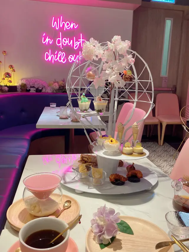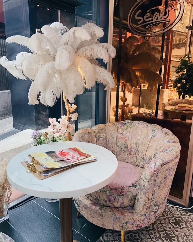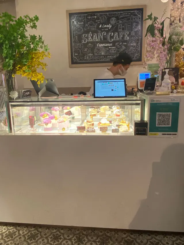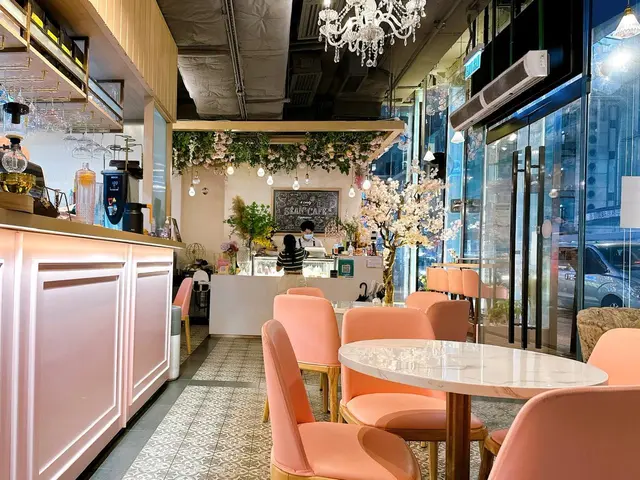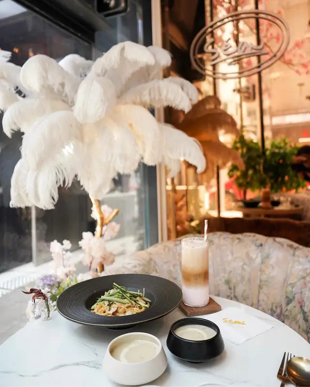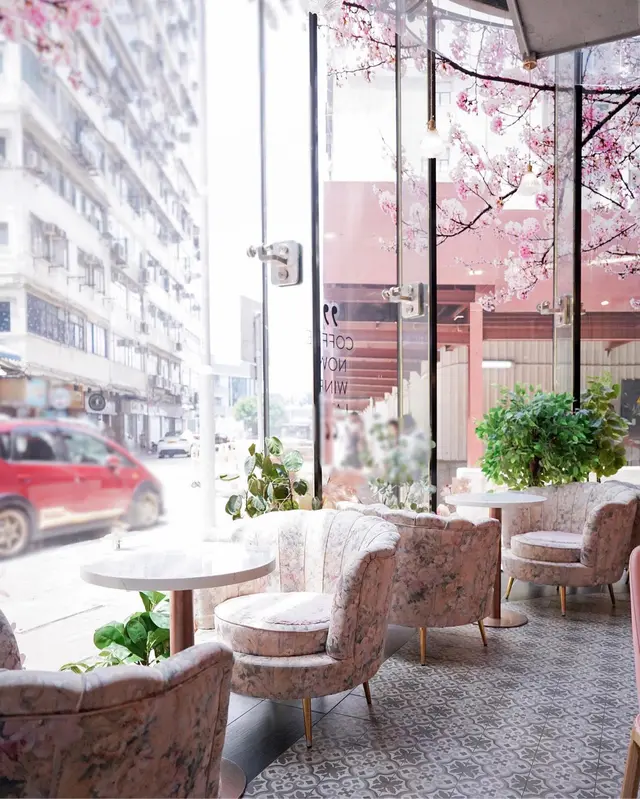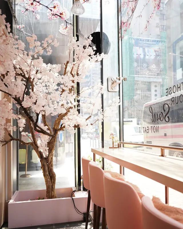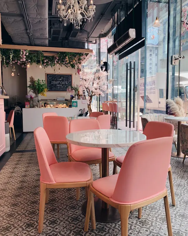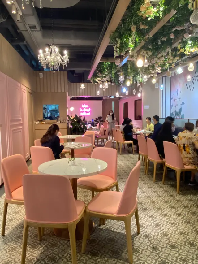 𝐒𝐞𝐚𝐧 𝐂𝐚𝐟𝐞落地玻璃設計,喺餐廳出面已經望到入面好靚,餐廳以粉色系為主調,以花為主題,滿滿嘅少女心