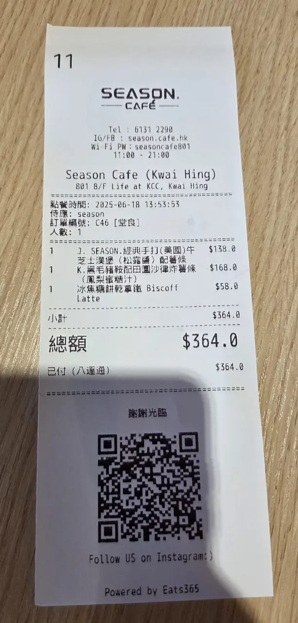 Season. Café (葵涌) 网址: https://s.openrice.com/QrLS0wa0C00 地址: 香港葵涌葵昌路72-76號Life@KCC 8樓801號舖 电话: +852 61312290