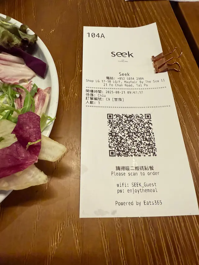 Seek (大埔) 网址: https://s.openrice.com/QrLS08xeC00 地址: 香港大埔白石角科進路21號逸瓏灣II期LG樓17-18號舖 电话: +852 60342904