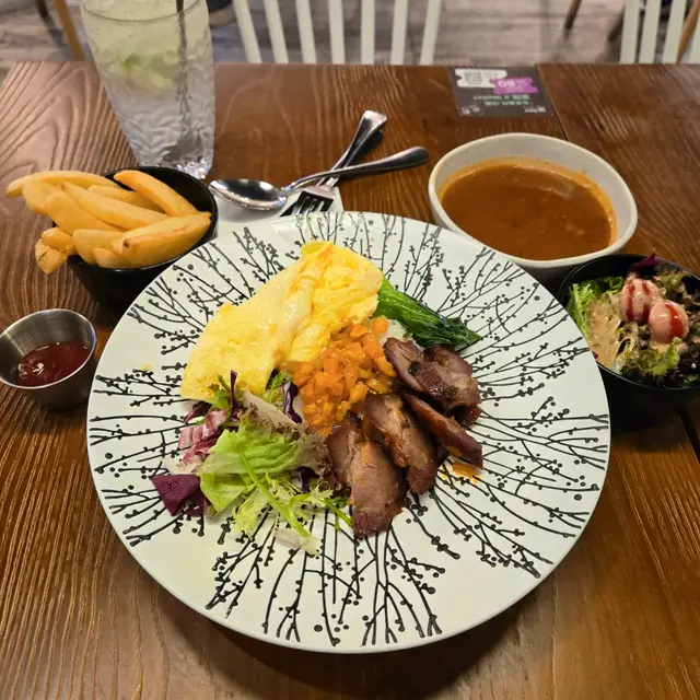 和風黯然銷魂叉燒飯/田園沙律/粗薯條/羅宋湯/爆打香水檸檬茶