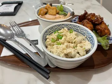 Got there at 12:15. First time visiting this small restaurant. It's alright. Not particularly tasty. Not bad either. Sort of in the middle. Nothing very surprising. Sort of what you would expect for a lunch pricing around $100-120. I ordered fried chicken and something called tofu rice. It's not really rice. But tofu chopped into small pieces. Tofu chopped into the size of rice. Sort of. Because I arrived early, there were not many people. I like it quiet. Customers are mostly polite folks. That's good. No rude loud-taking people around. That's good. I had a hot ginger tea. It's alright. Good. …查看更多