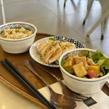 今天请朋友到科学园Sensory Zero食午餐,点了两客我系豆腐花,唐扬炸鸡配黑醋汁及炸豆腐慢煮鸡肉沙律,卖相OK,但唐扬炸鸡只有丁点鸡肉碎外,其余都是厚厚的炸粉,令人非常失望!