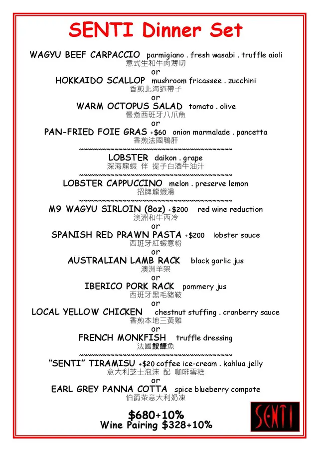 Senti (中环) 网上订位享特别优惠并赚Rice Dollars 网址: https://s.openrice.com/QrLS0Rwu900 地址: 香港中環雲咸街63號巴力大廈3樓 电话: +852 51121780