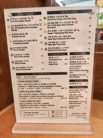 QR Code自己落单,有套餐或单点选择,套餐有碗面或汤饭,泡菜,腌萝卜,饺子或紫菜包饭,面条同李家一样都系自家制,但系口感好食过李家旗下同类型面馆,亦都没李家的面咁滞,佢既蚬汤面个汤底算清新,饮得出有些微蚬味,最紧要系d蚬无沙,泡菜冷面微酸&辣辣地,甚开胃,猪肉饺同李家一样都系用同一间工厂货就不必比较啦,但系佢d饺&饮品散叫定价都几贵下.......套餐黎讲以$98蚊(未计加一)又唔算话贵,都食得过既