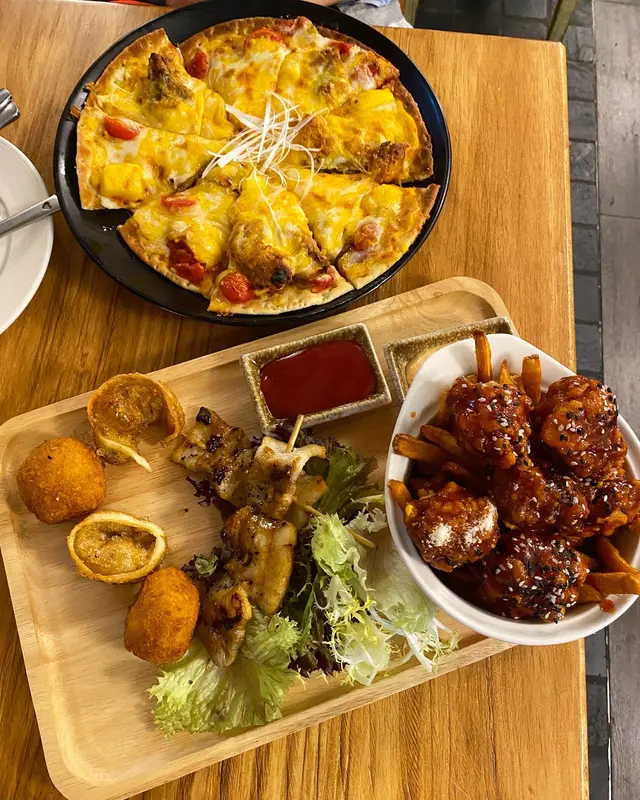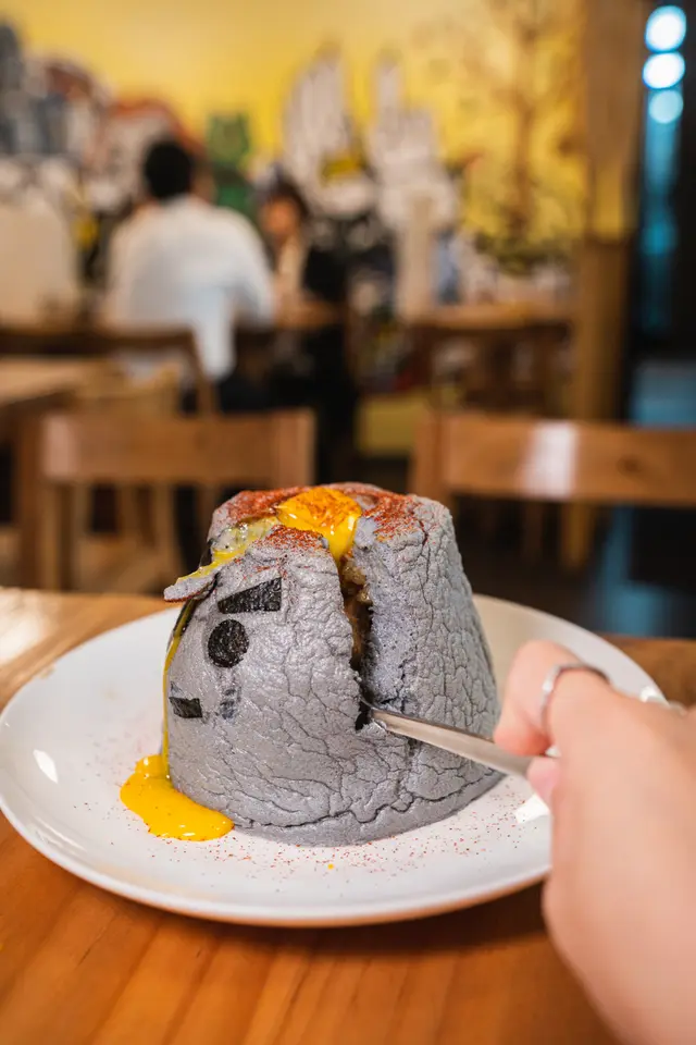 幾年前食過一次主打韓國fusion菜嘅 @seoulmatecafe 印象唔錯 上兩個星期喺銅鑼灣行完街諗唔到食咩 見呢間唔洗等位就再戰😆 點知原來係最後一次食嚕 銅鑼灣分店今日已經執咗 得返將軍澳店🤭🌋 烏 卒 卒 火 山 飯 $148 外層係加咗墨魚汁打成嘅蛋白 而入面係燒汁黑豚肉飯 造型夠曬可愛(⁎⁍̴̛ᴗ⁍̴̛⁎) 除咗有火山之外 仲可以揀一舊雲☁️ 打卡唔錯 但味道就普通 飯粒口感偏濕潤 而且唔係好夠熱🥺 🍗 黃 金 鹹 蛋 炸 雞 $168 每件炸雞都沾滿鹹蛋味🥰 香脆嘅黃金外皮 同嫩滑多汁嘅雞肉 口感外脆內軟 惹味到停唔到口😋🍢 甜 辣 醬 炒 年 糕 $88 正常發揮 年糕同韓式魚蛋嘅份量都幾多下 不過年糕口感偏硬😣 唔夠軟糯煙韌☕️ 焙 茶 奶 蓋 朱 古 力 雪 山 $68 飲品有驚喜🤤 奶蓋係我鐘意果種厚重質感 細膩兼帶一絲鹹香味😚 焙茶基底濃郁醇厚 撈埋面頭嘅朱古力都唔會太甜🤪 另外朋友飲嘅果杯Baileys奶蓋都唔錯😋Been to @seoulmatecafe several years ago and came back for its contemporary Korean dishes before its recent closure in Causeway Bay.Dressed as an angry-looking mountain, the 𝐕𝐨𝐥𝐜𝐚𝐧𝐨 𝐑𝐢𝐜𝐞 is totally instagrammable. Still, the taste is just mediocre as the rice stuffed inside the meringue exterior is quite soggy and not hot enough. 𝐑𝐢𝐜𝐞 𝐂𝐚𝐤𝐞𝐬 in sweet & spicy sauce are fair too due to the lack of chewiness🤔 Nevertheless, the 𝐒𝐚𝐥𝐭𝐞𝐝 𝐄𝐠𝐠 𝐅𝐫𝐢𝐞𝐝 𝐂𝐡𝐢𝐜𝐤𝐞𝐧𝐬 are definitely worth a try- savoury, crispy and juicy! As for drinks, I would rate the 𝐇𝐨𝐣𝐢𝐜𝐡𝐚 & 𝐃𝐚𝐫𝐤 𝐂𝐡𝐨𝐜𝐨𝐥𝐚𝐭𝐞 𝐌𝐨𝐮𝐧𝐭𝐚𝐢𝐧 8.5 out of 10. Really love how thick and tangy the foamy layer on top is and how rich the smoky taste of hojicha that follows🤤 …查看更多