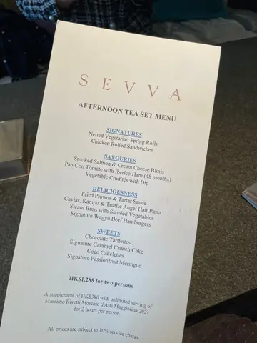 早前宣布今年五月要结业了,其实4月中就关,Sevva 应该系中环无人不知吧而Afternoon tea 一向都是好多女仔们去Sevva 的原因,好多年前食过佢地tea set ,都系过年时间,今日故意再去一敞,重拾旧日回忆。不过今年没有过年主题tea set ,我觉得呢个比较好食价钱比酒店还要贵,但还是会拣呢个,因为整个Tea set每一件都好食🤗蛋糕咁多年黎,水准系一直维持,好好味❣️餐厅真系好有空间感,可以同朋友好chill ,畅谈一个下午👩🏻‍🤝‍👩🏼💰 $1288 + 10% 包一杯sweet wine ,唔岩可转menu mocktail + 一款Coffee/Tea 呢个配搭个人觉得好好🥂查看更多