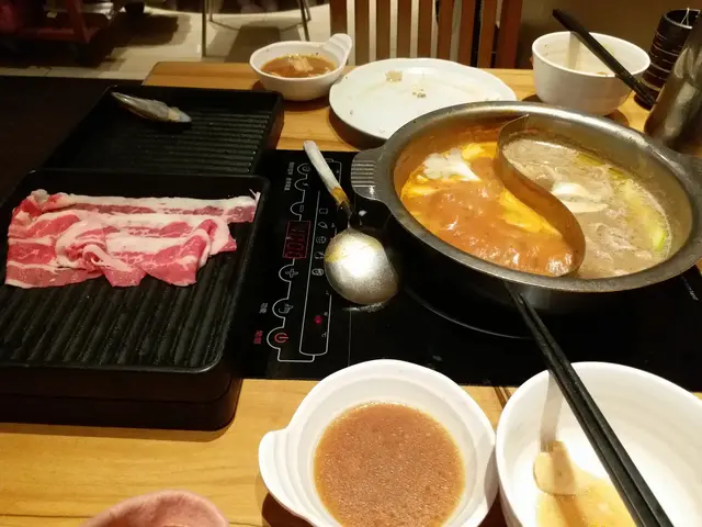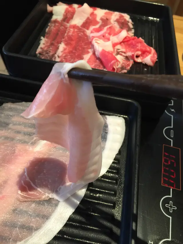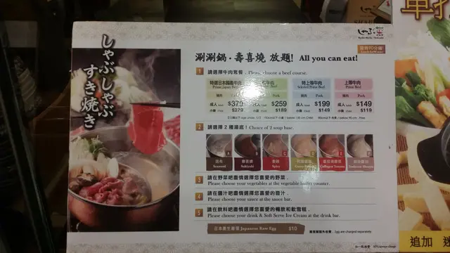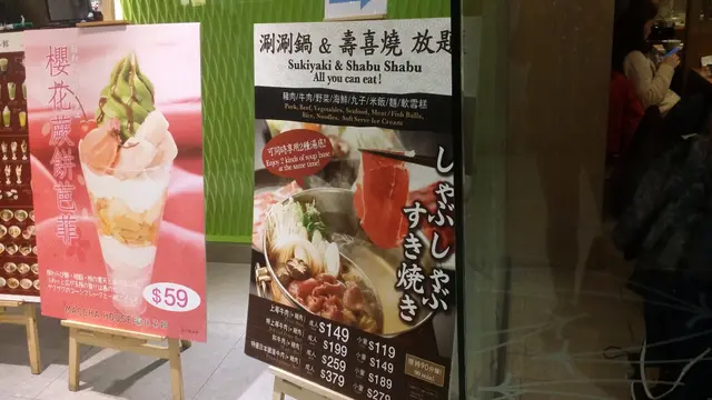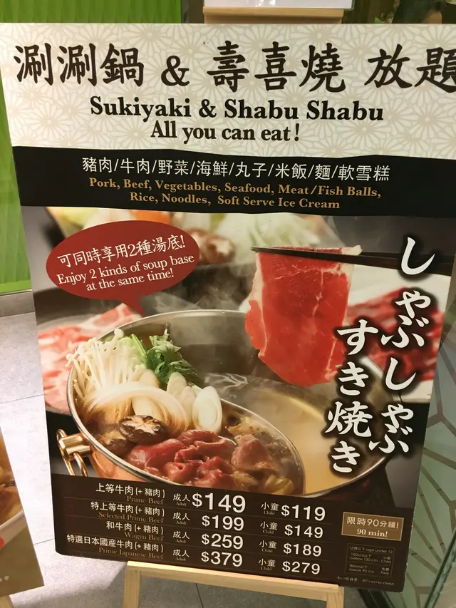 ,所以提議光顧地下的しゃぶしゃぶ放題。我一征:一來被她晚飯時段挑戰任食的「勇氣」所折服,二來因為對於しゃぶしゃぶ這個飲食 form,已不知 what to expect。連商場地下也在大規模裝修,到處都被圍著