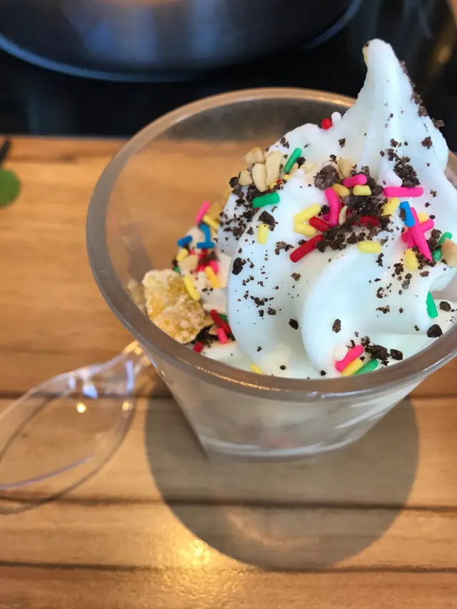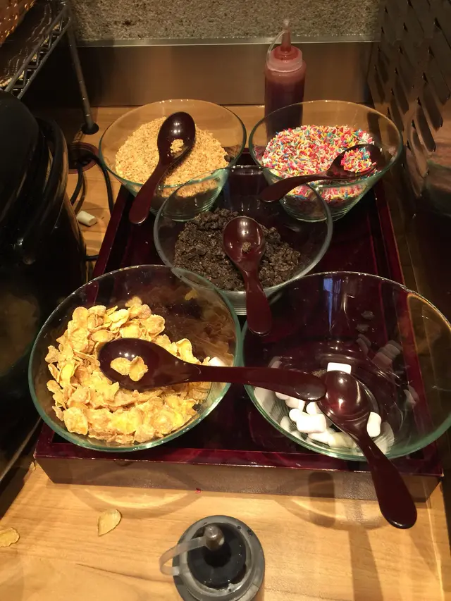 。今天她除了用汽水機的 soda 混和芒果沙冰來喝、減低甜度亦使其冇咁冰凍 (壞胃呀!