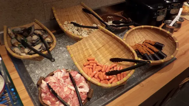 ,不是走到窄窄走道的盡頭,都不會看見這源自東京池袋、在日本全國有接近五十個據點的店。走進去看看,一如所料地有醬料、自取材料 (菜、丸等)、飲品和甜品 (也一如所料是乳酪雪糕) 等區域,沒甚麼新奇。同伴出的主意,我也沒有甚麼反對的理由,便進去坐下了,並選了最便宜的 $149「上等牛肉」90分鐘放題。 我們選了喇沙和蕃茄兩款湯底,兩個都很對味