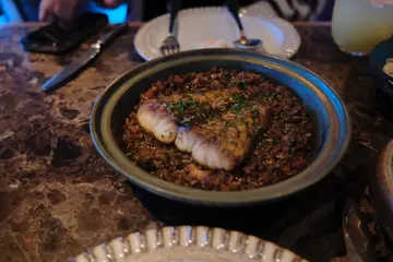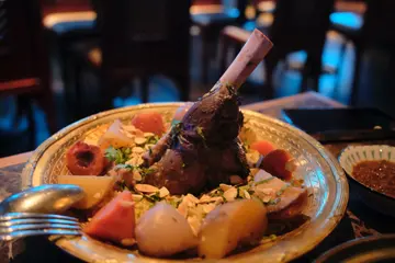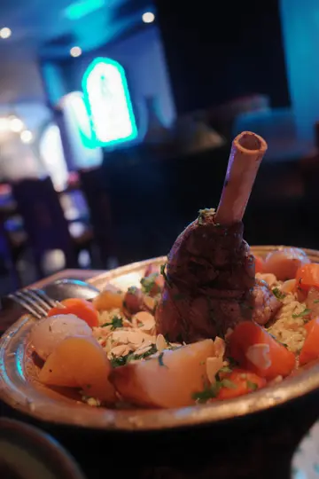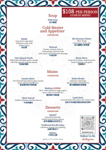 Shahrazad黎巴嫩餐厅的感官盛宴一出电梯金碧辉煌,以蓝色为主调嘅设计,昏暗嘅环境添加咗神秘感,完成体验到异国风情,空气中浮动著香料与烤肉的温热气息【前菜:葡萄干鹰嘴豆蓉】月光般乳白的鹰嘴豆泥铺成圆形圈,中间带点葡萄粒,金黄橄榄油汇成漩涡,葡萄干的蜜甜配现烤皮塔饼撕开时腾起的麦香,以及热辣辣,相当可口。【蒜香柠檬虾】肥美海虾食落爽口弹牙,混合蒜片,柠檬汁,完全将虾嘅鲜味带出配合罗勒叶,香草🌿,惹味又开胃【美国牛肋肉炖秋葵】秋葵的黏液化作浓稠酱汁,炖至酥烂的牛肋肉。番红花与肉桂在舌尖上留有余香秋葵的清脆与牛肉软腍,香浓牛肉油脂香,Base 用上大量蕃茄,加配烟熏Ouzi 香饭$38 ,饭香十足,感觉有啲似黄油饭【澳洲羊架串】炭火上烤过嘅羊架洒上孜然粉,外层羊肉粒烤到烟熏微㶶,唔会过分油腻,点一点薄荷酸奶,中东味道完美带出伴碟配有车厘茄,甜酸洋葱【开心果米饭布丁】不可或缺的甜点🤭见个名好得意,又饭又布丁,究竟系咪甜品黎一食落去充满惊喜,奶香混和开心果米饭粒,面头衬有玫瑰花瓣碎,开心果碎,每一啖开心果味好浓郁,食落软滑,感觉好幸福食饭途中有个女郎出嚟跳肚皮舞相当惊喜,裙褂飘逸带动全场气氛,感觉令人沉醉,赢来全场掌声餐厅装潢充满左神秘阿拉伯风情,感觉令人放松,呢间绝对系值得一试嘅中东餐厅,食物同环境都好吸引,连Toilet设计都相当美…查看更多