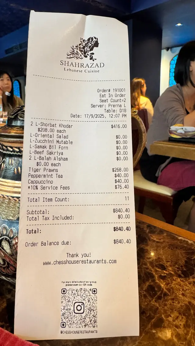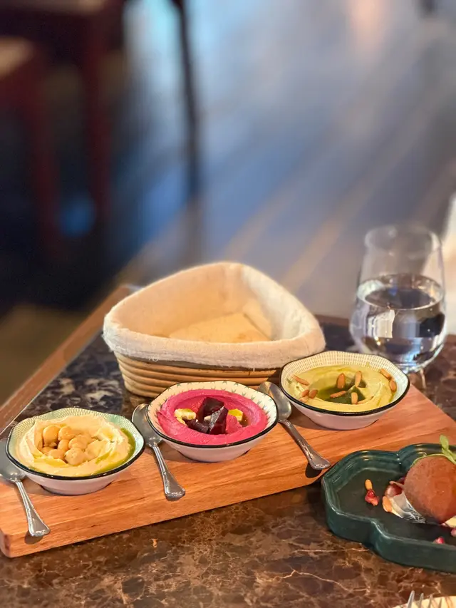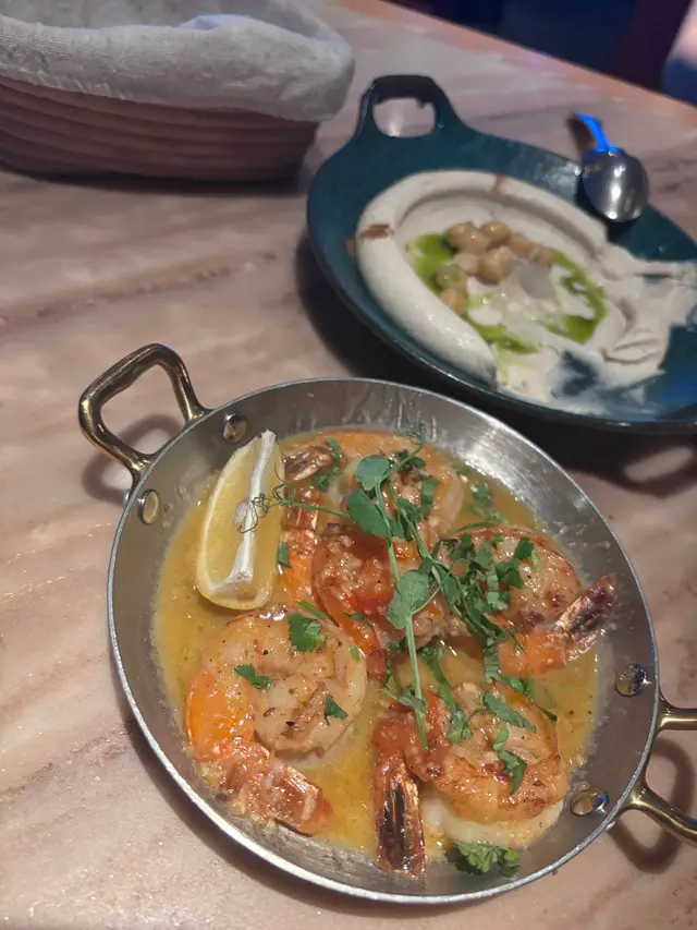 Shahrazad黎巴嫩餐廳的感官盛宴一出電梯金碧輝煌,以藍色為主調嘅設計,昏暗嘅環境添加咗神秘感,完成體驗到異國風情,空氣中浮動著香料與烤肉的溫熱氣息【前菜:葡萄乾鷹嘴豆蓉】月光般乳白的鷹嘴豆泥鋪成圓形圈,中間帶點葡萄粒,金黃橄欖油匯成漩渦,葡萄乾的蜜甜配現烤皮塔餅撕開時騰起的麥香,以及熱辣辣,相當可口。【蒜香檸檬蝦】肥美海蝦食落爽口彈牙,混合蒜片,檸檬汁,完全將蝦嘅鮮味帶出配合羅勒葉,香草🌿,惹味又開胃【美國牛肋肉燉秋葵】秋葵的黏液化作濃稠醬汁,燉至酥爛的牛肋肉。番紅花與肉桂在舌尖上留有餘香秋葵的清脆與牛肉軟腍,香濃牛肉油脂香,Base 用上大量蕃茄,加配煙燻Ouzi 香飯$38 ,飯香十足,感覺有啲似黃油飯【澳洲羊架串】炭火上烤過嘅羊架灑上孜然粉,外層羊肉粒烤到煙燻微燶,唔會過分油膩,點一點薄荷酸奶,中東味道完美帶出伴碟配有車厘茄,甜酸洋蔥【開心果米飯布丁】不可或缺的甜點🤭見個名好得意,又飯又布丁,究竟係咪甜品黎一食落去充滿驚喜,奶香混和開心果米飯粒,面頭襯有玫瑰花瓣碎,開心果碎,每一啖開心果味好濃郁,食落軟滑,感覺好幸福食飯途中有個女郎出嚟跳肚皮舞相當驚喜,裙褂飄逸帶動全場氣氛,感覺令人沉醉,贏來全場掌聲餐廳裝潢充滿左神秘阿拉伯風情,感覺令人放鬆,呢間絕對係值得一試嘅中東餐廳,食物同環境都好吸引,連Toilet設計都相當美…查看更多