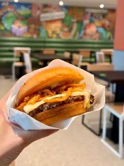 最近去咗圆方新开嘅Shake Shack,位置就喺西九龙高铁站隔离,交通都好方便!!店舖外观简洁大方,入面装修走简约风,但又带少少美式轻复古感觉💚木色同绿色元素令成个空间好舒服。坐低之后,仲可以望到少少海景,虽然唔系超大景观,但系用餐时有啲自然光加上海边景色,感觉更加chill。圆方新舖嘅环境干净企理,唔会好嘈吵,座位都好多,同朋友过嚟静静地坐吓倾吓偈/一个人食个快闪餐都好适合👍🏻我拣咗今次嘅限定新品——白松露芝士牛肉堡🍔安格斯牛肉扒煎得啱啱好,咬落去肉香好浓郁,仲有啲肉汁,食落去好满足。芝士虽然冇夸张嘅拉丝效果,但入口好香滑,奶香同牛肉好夹,食落去好顺口。加埋脆洋葱,口感层次更加丰富。最惊喜系白松露酱,香气好细致,唔会太抢味,同牛肉、芝士融合得好自然,每一口都好有高级感💫面包都好松软,吸咗酱汁之后更加好食~总括嚟讲,白松露芝士牛肉堡真系值得一试👍🏻牛肉香、芝士滑、松露酱香气突出,食完感觉有惊喜~圆方新店交通方便,环境舒服又有海景view🩵喺一个好啱打卡同享受美食嘅地方。…查看更多