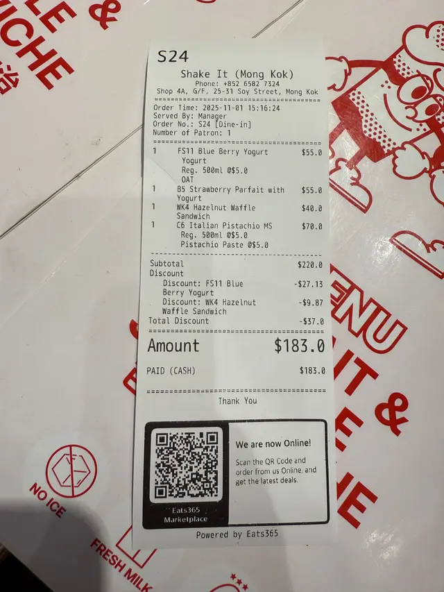 SHAKE!T (旺角) 网址: https://s.openrice.com/QrLS0258D00 地址: 香港旺角豉油街25-31號地下4A號舖 电话: +852 65827324
