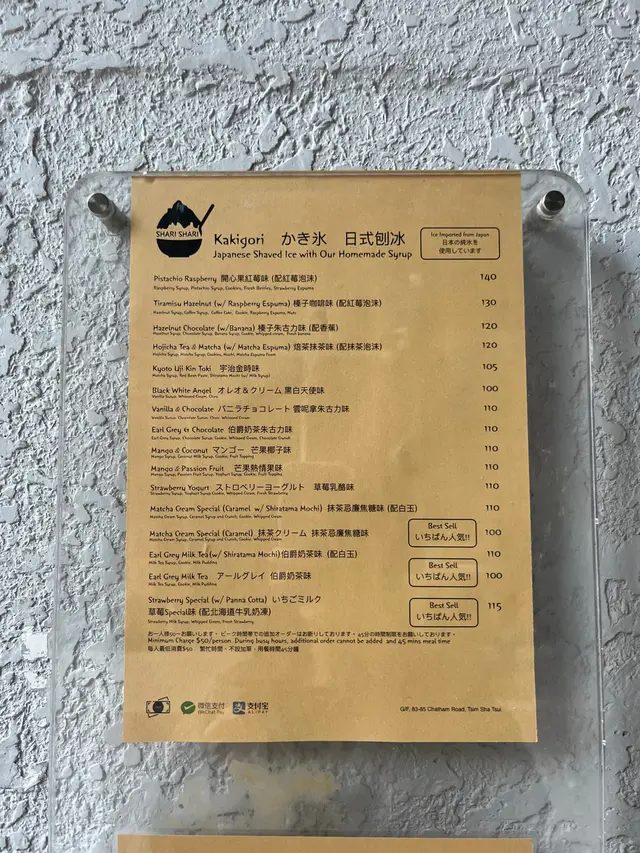 上星期我在尖沙咀的SHARI SHARI Kakigori House和朋友享用了刨冰,这次的体验让我感到非常满意。当晚,点了一份蜂蜜柠檬乳酪口味的刨冰。起初我的朋友担心柠檬的味道会太酸,但我觉得其实还好,或许是因为我本身也喜欢吃酸的东西,并没有让人觉得味道会太酸。相反,柠檬的酸味和乳酪的奶香以及蜂蜜的甜味搭配得非常好,刨冰里面也有些消化饼碎,吃起来十分出色。此外,这里的刨冰一向口感细腻、轻盈整体而言食物相当不错。除了食物质素,店内的服务也不错。店内的环境也很舒适,非常适合与朋友聚会或聊天。整体而言,SHARI SHARI真的是一个饭后甜品的好选择,下次会再来尝试其他口味!…查看更多