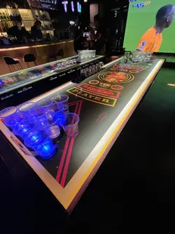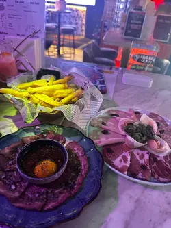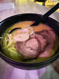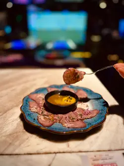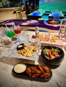 周末和朋友到诺士佛台的ShowTime Sports Bar聚聚。餐厅非常特别,以运动为主题,空间宽敞且娱乐设施丰富,能观赏赛事、聆听现场音乐,更设有飞镖、Beer Pong、俄罗斯轮盘等游戏,让人尽情投入欢乐氛围!而最令人惊喜的是,这里的「Crazy Hour」优惠力度惊人,每日供应$28一杯的啤酒或红白酒,$48即可享用大大碟Cold Cut拼盘,$60还有Highball配两串串烧,价格亲民。虽然我们两个都不嗜酒,但对这里的食物和饮品皆有惊喜。1. 日式烧牛肉(Yakiniku)薄切牛肉经酱油、味醂等日式调味料腌制,烧烤后肉质鲜嫩多汁,入口即化,我们吃得津津有味。2. 黑松露薯条金黄酥脆的薯条蘸上浓郁香气十足的松露酱,酱,每一口都充满咸香与松露香,虽然邪恶,但实在太好味!3. 胡椒猪骨汤面汤底以猪骨长时间熬制,浓郁醇厚,加入大量胡椒粉带来微辣刺激,面条弹牙有嚼劲,搭配嫩滑猪肉片,香辣暖胃。4.Cold Cut拼盘拼盘有多款冻肉,如意大利烟熏巴马火腿、鲜火腿、沙乐美肠及梦特爹拿肉片等。巴马火腿咸香适中,带著淡淡烟熏气息;鲜火腿口感细嫩,入口清爽;沙乐美肠香气浓郁。拼盘摆盘很美,以如此相宜的价钱能品尝多款优质冻肉,真的物超所值。5. 豚肉组合优惠时段有很多串烧组合,我们选了「豚肉组合」。有猪领肉、黑豚腩肉、猪瑚蝶腩及猪肉肠。猪领肉肉质紧实弹牙,烧烤后油脂芬芳;黑豚腩肉肥瘦匀称,入口即化;猪肉肠则外皮微脆,肉香浓郁。…查看更多