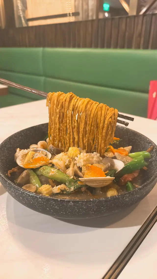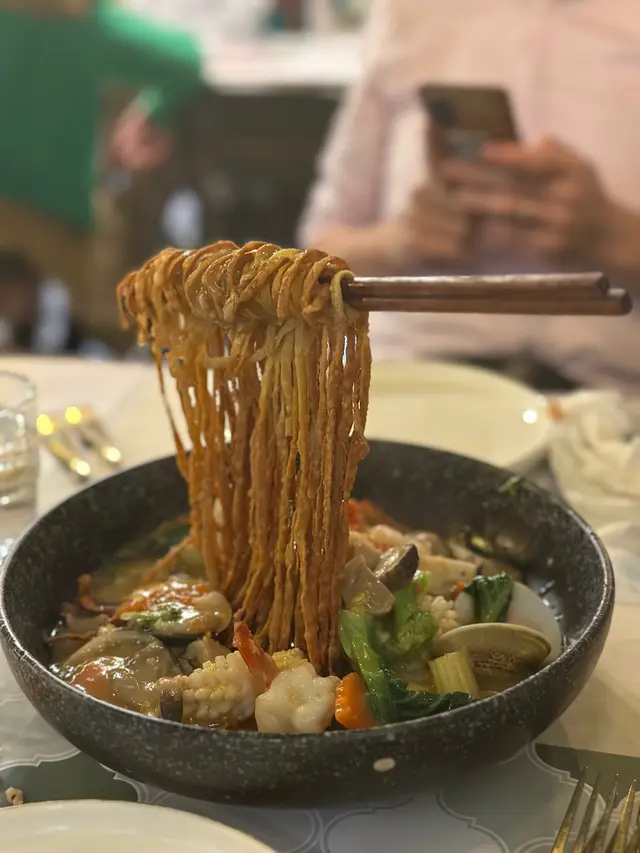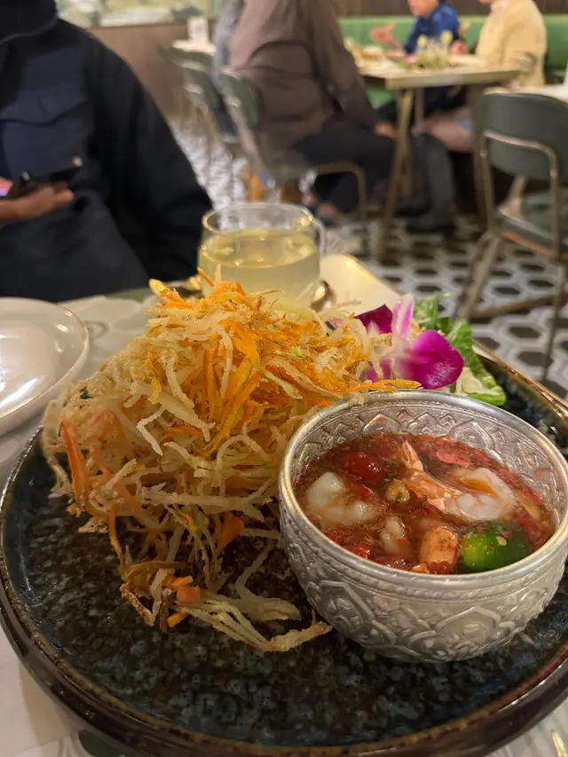 跟朋友行過尖沙嘴,肚仔餓到咕嚕咕嚕叫,行到這間泰菜店一試,真係意外嘅滿足!餐廳色彩搭得好有泰國feel,仲有綠植裝飾,有種小度假嘅感覺。頭盤點咗碗冬陰功,湯底正宗,椰香夠晒味,酸辣過癮,同餐廳內嗰啲氣氛好夾,真係飲得我一啖又一啖😋。跟住主菜上,一大碗青木瓜沙律,炸得香脆,個個木瓜絲撲鼻而黎,配上鮮蝦辣椒醬汁,夠晒惹味,一啖落去,口感爽口,鮮辣得嚟唔怕一身汗,一試過依家成日掛住喺腦海入邊🤤!唔止咁,仲有濕炒海鮮麵,金黃香脆嘅麵條掛喺空中,一夾,一捲,好玩得黎味道更加正!🍜🍤 海鮮鮮甜,醬汁濃郁,啖啖肉,包你食到手指都要嘥住!係度聚舊,一邊傾計,一邊食,好開心,味覺都滿足到。最後,當然唔少得個芒果沙冰,鮮甜開胃,件件芒果肉滑嫩,解渴兼甜蜜,食完嗰陣,感覺好似度咗個小假期咁。呢家泰菜店,夠晒正宗,食物味道、環境氣氛、服務態度,仲有得打卡,啱晒鍾意食得樂又愛玩嘅你我佢!emoji😍🍛🌴…查看更多