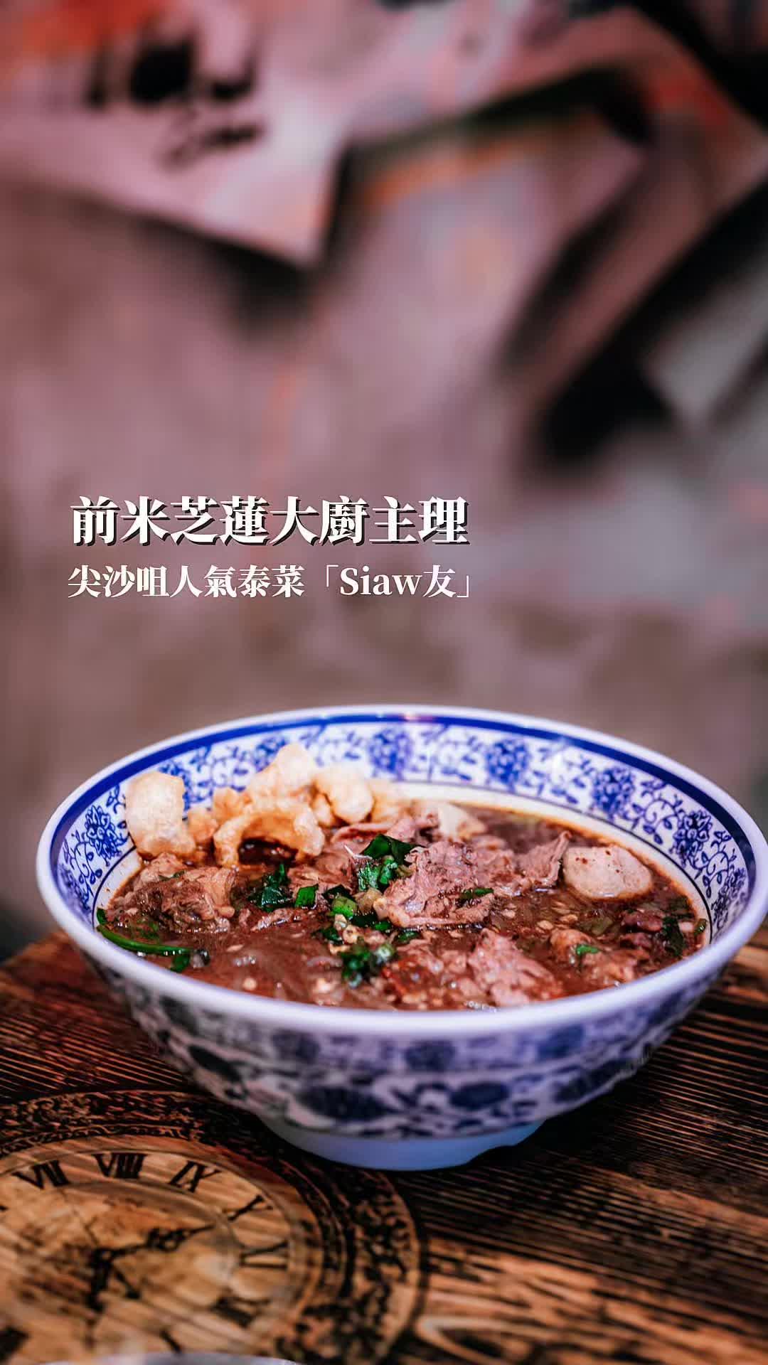 尖沙咀近年多了不少新派泰菜,但这间由两位泰籍好友主理的「ꜱɪᴀᴡ友」,却保留了最地道的味道。主厨ᴀʀᴛ曾于多间香港知名泰国餐厅任职,与好友ᴘᴀᴇ一拍即合,一个主理厨房、一个主理店务,将「ꜱɪᴀᴡ」(泰文意即「朋友」)开成属于两人友情的小天地。店面不大,开放式厨房传来阵阵香气,氛围轻松亲切,带点曼谷街头小馆的感觉。.今次试了几款菜式,味道都颇有惊喜。咸蛋木瓜沙律酸辣中带咸香,青木瓜爽口,辣劲刚好。和牛船面汤底浓郁,牛肉软腍,味道带微甜,是少有在香港吃到的正宗版本。啖啖蟹肉奄列外层香脆、内里松软,蟹肉分量实在。醉猫炒河则炒得镬气十足,河粉烟韧入味,是下酒又惹味的一道。.最特别要数甜品泰式椰子煎饼。这道在泰国街头常见的小食,在香港却难得一见。煎饼底部脆香,中心是热辣辣的椰浆馅,椰香浓郁,一碟有粟米、香葱及椰子三种口味,每一口都有层次。这种香气和口感组合,让人即时想起泰国街边档的味道。.对于挂念泰国街头味道的食客,这里的船面和煎饼都能解一解思乡的瘾。作为船面爱好者,这里绝对是笔者在香港吃过满合口味、地道风味的一间泰国小馆。.✿ 咸蛋木瓜沙律 💲68✿ 和牛船面 💲118✿ 啖啖蟹肉奄列 💲168 ✿ 醉猫炒河 💲108 ✿ 泰式椰子煎饼 (椰子馅、粟米馅、香葱馅)💲58…查看更多
