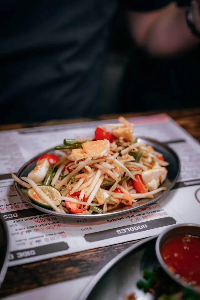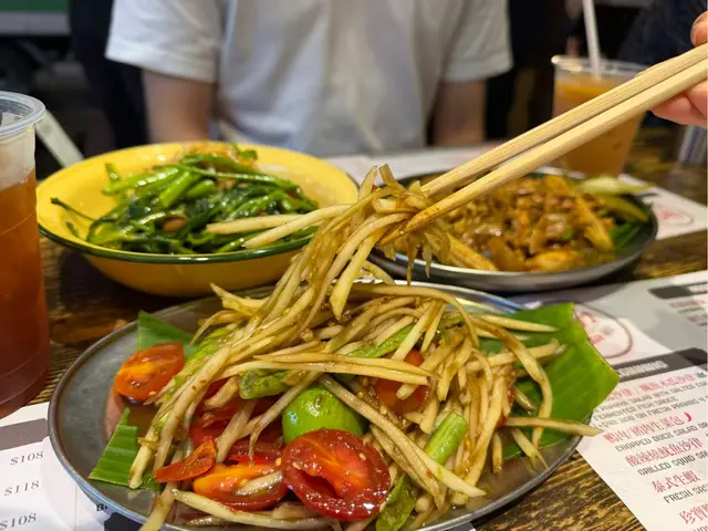 尖沙咀近年多了不少新派泰菜,但這間由兩位泰籍好友主理的「ꜱɪᴀᴡ友」,卻保留了最地道的味道。主廚ᴀʀᴛ曾於多間香港知名泰國餐廳任職,與好友ᴘᴀᴇ一拍即合,一個主理廚房、一個主理店務,將「ꜱɪᴀᴡ」(泰文意即「朋友」)開成屬於兩人友情的小天地。店面不大,開放式廚房傳來陣陣香氣,氛圍輕鬆親切,帶點曼谷街頭小館的感覺。.今次試了幾款菜式,味道都頗有驚喜。鹹蛋木瓜沙律酸辣中帶鹹香,青木瓜爽口,辣勁剛好。和牛船麵湯底濃郁,牛肉軟腍,味道帶微甜,是少有在香港吃到的正宗版本。啖啖蟹肉奄列外層香脆、內裏鬆軟,蟹肉分量實在。醉貓炒河則炒得鑊氣十足,河粉煙韌入味,是下酒又惹味的一道。.最特別要數甜品泰式椰子煎餅。這道在泰國街頭常見的小食,在香港卻難得一見。煎餅底部脆香,中心是熱辣辣的椰漿餡,椰香濃郁,一碟有粟米、香蔥及椰子三種口味,每一口都有層次。這種香氣和口感組合,讓人即時想起泰國街邊檔的味道。.對於掛念泰國街頭味道的食客,這裏的船麵和煎餅都能解一解思鄉的癮。作為船麵愛好者,這裡絕對是筆者在香港吃過滿合口味、地道風味的一間泰國小館。.✿ 鹹蛋木瓜沙律 💲68✿ 和牛船麵 💲118✿ 啖啖蟹肉奄列 💲168 ✿ 醉貓炒河 💲108 ✿ 泰式椰子煎餅 (椰子餡、粟米餡、香蔥餡)💲58…查看更多