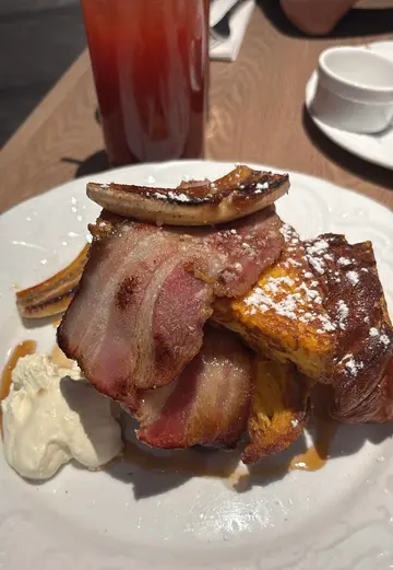 $158 假日brunch ,有餐汤,饮品,主食。商场入面唔算贵,叫左breef burger with fries 味道中规中矩,另外叫左all day breakfast, 质素同茶记差唔多,外表已经唔吸引。个块包无烘过咁,失败!烟肉煎得唔够香,失败!猪肉肠太咸,失败!系得个炒蛋合格,不过就真系完全唔值呢个价啦!以前个水果茶有个橙系到,感觉几fresh, 而家悭埋旧橙。可能价钱去左环境到,坐得舒服,服务都唔错,不过好多人,所以几嘈下。不过呢间餐厅长期要等位,不乏支持者。如果唔想等,最好12点前到。…查看更多