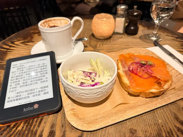 下午茶在金鐘唔想食快餐,唔想去酒店tea,Simple Life係一個唔錯選擇。環境安安靜靜,音樂聲適中,集合零碎嘅餐具聲,人們細語聲其實幾治癒,自己睇住書,食住自己嘅餐,好舒服😌🎶✨🍽️煙三文魚菠菜黑醋紅洋蔥烤農夫包 伴青蘋果椰菜絲沙律$82 + 大杯cappuccino (+$10):- 沙律🥗:好新鮮、爽口,立即refresh 💪🏻- 煙三文魚包:煙三文魚跟麵包好夾,有咬口,食得出麵包係即日做嘅好新鮮👍🏻- 咖啡☕️:咖啡好滑,真係要加大杯先夠飲👍🏻…查看更多