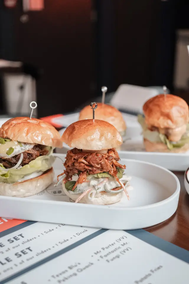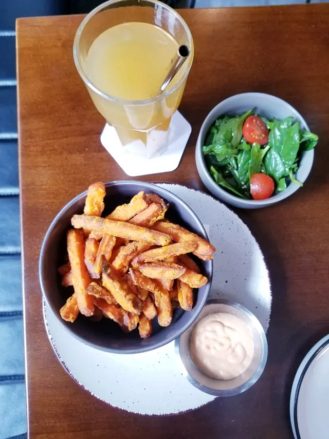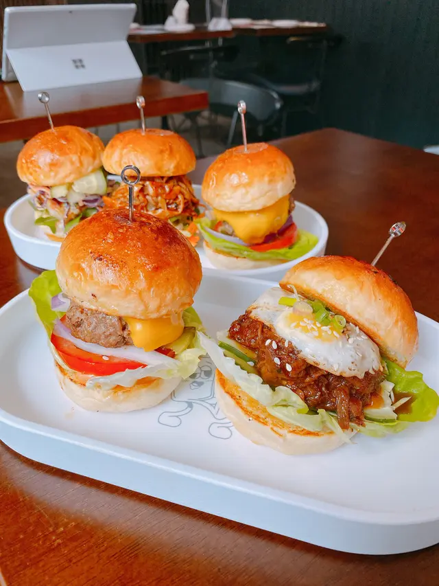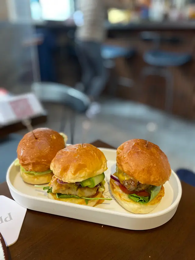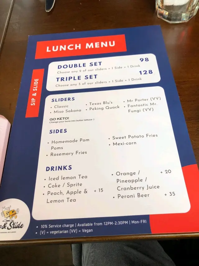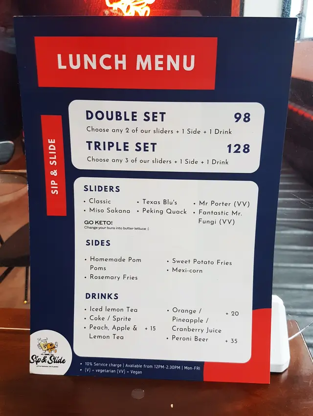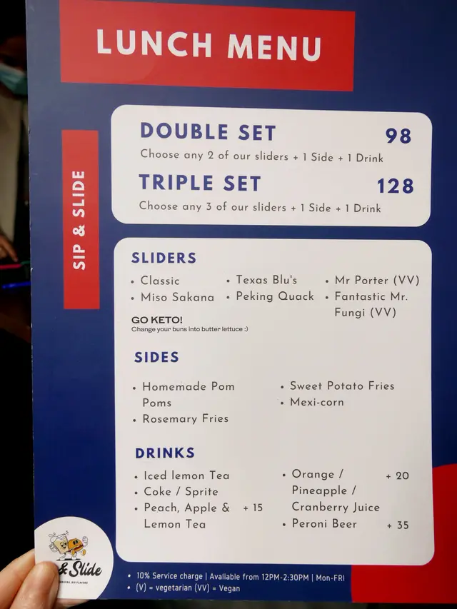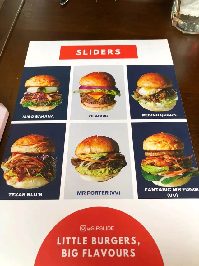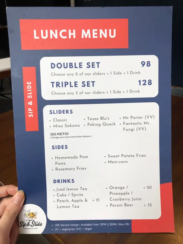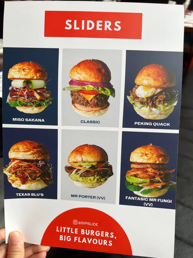 Sip & Slide是位於中環的樓上漢堡包店,空間闊落 而且有天然光,環境不錯。午餐有Double Set 和Triple Set兩款選擇,由於共有六款不同口味的迷你美式漢堡包於是便點了兩份Triple Set $128。 Triple Set 套餐包 1 客沙律、3 個迷你漢堡、1 款配菜和 1 杯飲品。沙律菜新鮮爽脆。Mexi-corn香甜的粟米粒配上紫洋蔥、番茄、菜粒和蔥花等,伴以淡忌廉和青檸汁,入口酸中帶辣,非常開胃,而且份量也不少。 Rosemary Fries薯條熱騰騰的,香脆可口,而且每條都帶有迷迭香,令人吃不停口。Sliders 有 6 款可供選擇,包括有 Classic、Miso Sakana、Texas Blu’s、Peking Quack、Mr. Porter 及 Fantastic Mr. Fungi。Classic最傳統的漢堡,厚身的漢堡扒,肉味濃郁又多汁,配上芝士、生菜、番茄、洋蔥和酸瓜,經典就是美味。Peking Quack手撕北京填鴨,絲絲都充滿鹹香,醬汁香濃,加上賣相可愛的太陽鵪鶉蛋,蛋汁加上鴨肉一齊食,更滋味。Miso Sakana 另一款特別的就是蘋果味噌魚,魚柳以蘋果味噌醬醃製過,帶有甜味,魚肉鮮嫩多汁,配上青瓜紅蘿蔔絲,帶有日式風味。Peach, Apple & Lemon Tea帶有桃香的檸檬茶就是夏日涼品。體積小小的漢堡,用料充足,兩個女孩子都吃得飽飽的,而且沒有限時,相比有些限時的餐廳這兒非常適合聊天過一個下午。…查看更多