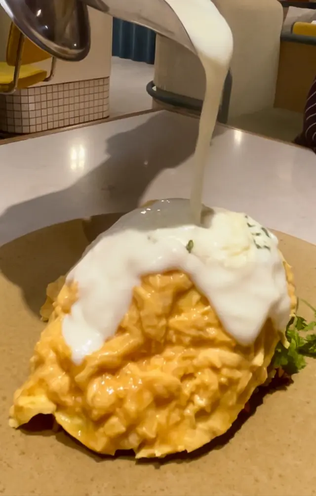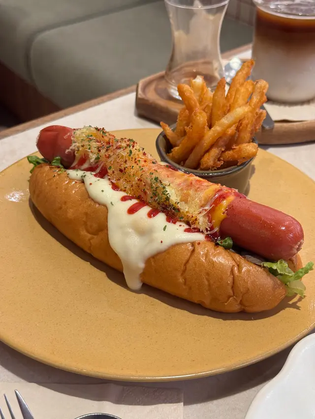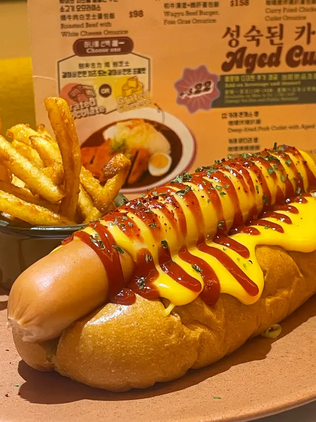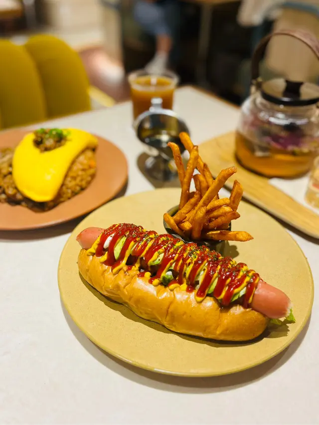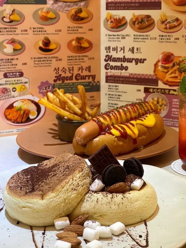 喜歡打卡,尋找特色和創意美食的我,最近在海港城發現一間頗吸引的韓式Cafe☕️.🎵 原木暖調的韓風Cafe!暖黃燈光配K-pop音樂循環播放,彷彿置身首爾😬 打卡氛圍感滿分📸.✨必試招牌美食✨🧀 雙重芝士漢堡蛋包飯 $108~ 蛋包飯是必點的招牌菜✨ 一刀切開🔪 金黃蛋皮瞬間湧出熱呼呼的流心蛋漿,再倒下雙重芝士,火山般熔岩倾瀉下來🌋~ 超厚漢堡牛肉外焦內嫩,咬下肉汁爆湧💥~ 香濃芝士與蛋香包裹每一粒飯,口感邪惡飽滿😋.🌭 墨西哥牛油果熱狗 $115~ 巨無霸級熱狗!尺寸超誇張😱 一份夠兩個人分享😋~ 一刀切下🔪 滿餡爆棚👏 鋪滿新鮮綿滑的牛油果、爽脆蔬菜與炒香的蘑菇,再淋上特製酸甜醬汁,視覺衝擊滿分💯~ Creamy的牛油果,紮實肉香的肉腸與蘑菇的鮮美,多重口感在嘴裡滾動,濃郁又清爽,飽足感爆表👏.🥞 石板街舒芙蕾 $98~ 舒芙蕾是另一必點👍 Duang Duang顫動的雲朵來襲!~ 石板街舒芙蕾蓬鬆綿軟,疊滿濃郁巧克力醬🍫 QQ Oreo和香脆杏仁,一勺舀下如空氣般輕盈,甜而不膩,視覺與味覺雙重暴擊😍📸.🫖 人見人愛花茶 $52~ 🌹一杯清香玫瑰茶,去油解膩超舒暢!飯後輕啜,花香縈繞,消滯醒胃無負擔💖.☕️ 鮮奶咖啡 $42~ 🧊冰涼鮮奶咖啡,無糖消暑超解渴☀️.這家韓風餐廳,食物顏值吸引,非常適合打卡🫶.#舒芙蕾 #蛋包飯 #香港美食 #香港美食打卡 #香港旅游 #香港旅游攻略 #香港美食推荐 #海港城美食 #香港美食探店 #香港美食攻略 #梳乎厘 #海港城 #尖沙咀美食 #吃了甜会开心 #咖啡店…查看更多