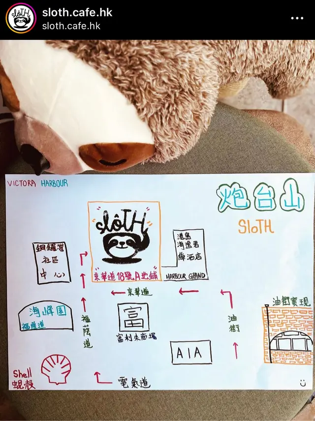 有個週末,跟兩位好姊妹走到位於炮台山港島海逸君綽酒店隔離的京華道商業大廈地下,有間樹懶主題咖啡店 <SlôTH Café> ,位置隱蔽!
