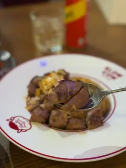 今日同FD到K11行街,睇到哩间慢煮牛唔错,咁试试。店铺以红色为主,装修似美式风格:)。Menu唔算特别丰富,得数款丼饭同小食可以拣,不过已经足够。Ginger ale & Cream soda,姜汁汽水入口清爽,微微哋姜嘅辛辣感,饮落去好清爽。忌廉苏打就甜啲,带住云呢拿香味,气泡够足,两款汽水配炸物都好夹