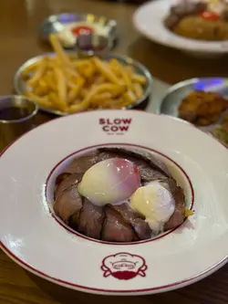 。慢煮熟成牛肉,搭配咗蒜香酱油炒泰国丝苗米饭同流心香煎日本蛋,酱汁拣咗芥末籽肉汁。熟成牛肉煮到好淋,肉质软腍,牛肉味浓郁。丝苗米饭炒得干身,米粒分明,蒜香同酱油味好突出。再落入日本蛋同酱汁,提升咗成道菜嘅层次