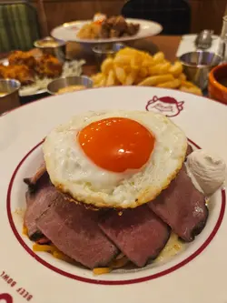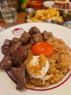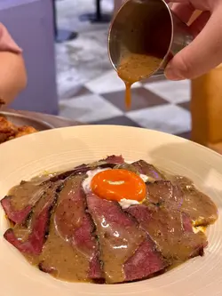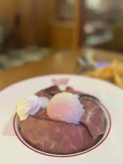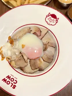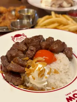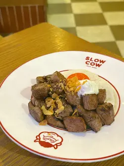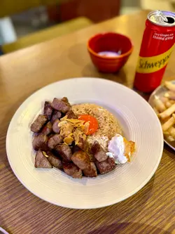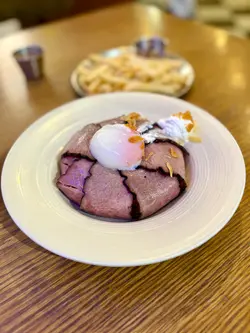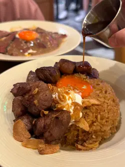 。慢煮熟成牛肉,搭配咗蒜香醬油炒泰國絲苗米飯同流心香煎日本蛋,醬汁揀咗芥末籽肉汁。熟成牛肉煮到好淋,肉質軟腍,牛肉味濃鬱。絲苗米飯炒得乾身,米粒分明,蒜香同醬油味好突出。再落入日本蛋同醬汁,提升咗成道菜嘅層次