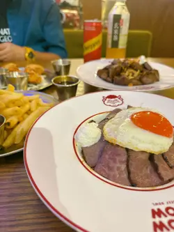 。A4+日本和牛丼,搭配日式炒雜菜同霹靂辣椒醬。和牛油花分佈均勻,煎到表面微焦,內裡半熟。牛肉入口即化,肉質鮮嫩。日式炒雜菜用咗椰菜、紅蘿蔔同蘑菇等,炒得爽口,帶少少甜味,平衡返和牛嘅油膩感。霹靂辣椒醬辣度適中,唔會好辣,落入炒雜菜更加開胃