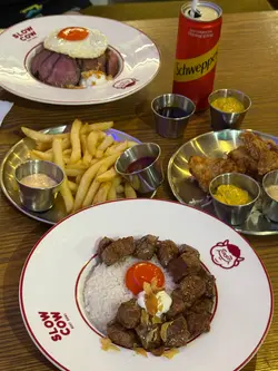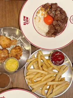 今日同FD到K11行街,睇到哩間慢煮牛唔錯,咁試試。店鋪以紅色為主,裝修似美式風格:)。Menu唔算特別豐富,得數款丼飯同小食可以揀,不過已經足夠。Ginger ale & Cream soda,薑汁汽水入口清爽,微微哋薑嘅辛辣感,飲落去好清爽。忌廉蘇打就甜啲,帶住雲呢拿香味,氣泡夠足,兩款汽水配炸物都好夾